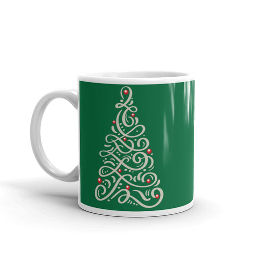 Elegant Christmas Tree Scroll Gift Mug Green, lioness-love