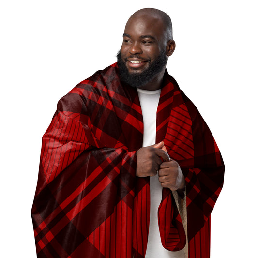 Plaid Red and Black Sherpa blanket lioness-love