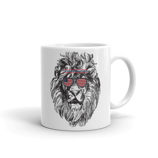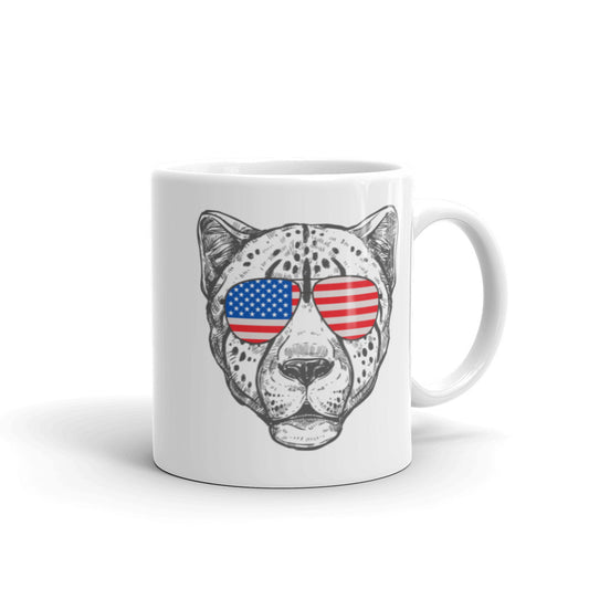 Cheetah Face Coffee Mug with USA Flag Sunglasses Patriotic Animal Print Mug, lioness-love