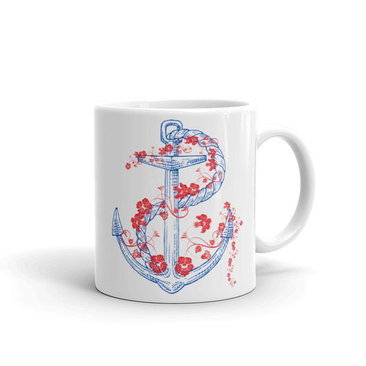Nautical Anchor with floral rope coffee mugs, lioness-love
