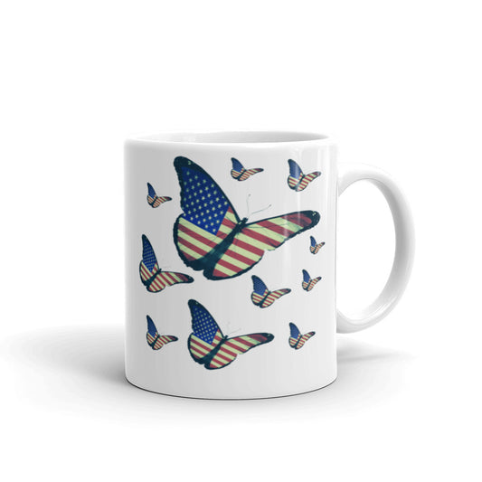American flag butterflies white coffee mugs, lioness-love