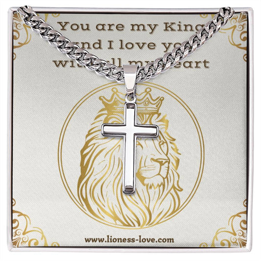SaleCross Necklace for Men Personalize Cuban Chain Set, lioness-love