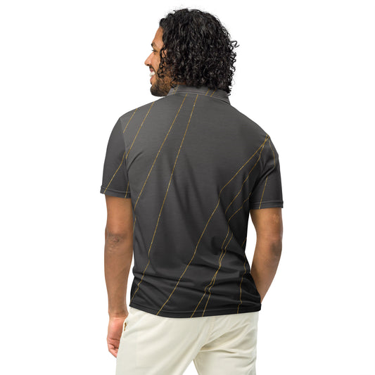Men’s Slim Fit Polo Shirt, Designer Off Black Gold Crackle, lioness-love