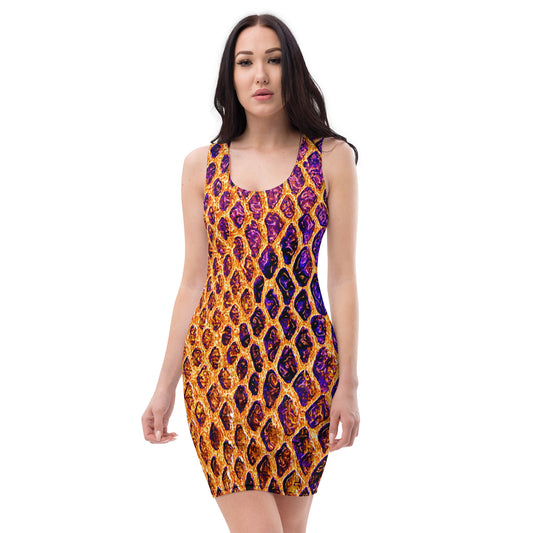 Radiant Reptilian Charm Colorful Snakeskin Sheen Fitted Dress, lioness-love