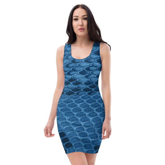Unique Blue Snakeskin Mini Fitted Dress, lioness-love.com