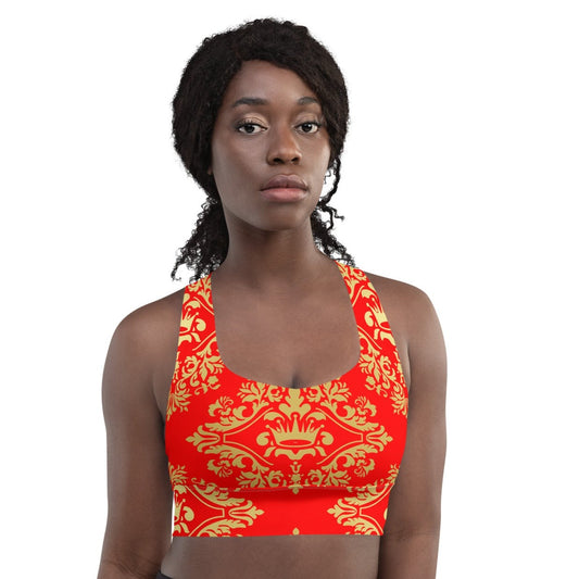 Women's Red & Gold Longline Sports Bra, lioness-love