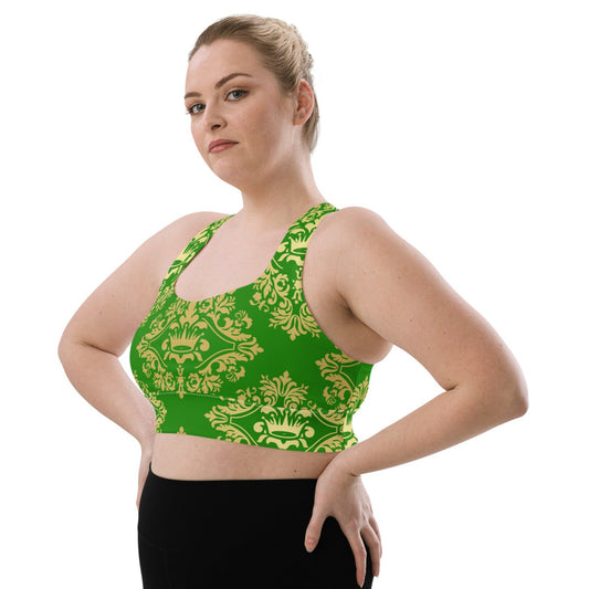 Trendy Gold & Green Longline Sports Bra, lioness-love