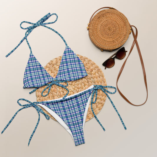 Sea Blue Oceanic Charm Check String Bikini, lioness-love