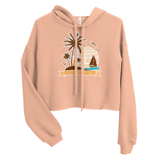 Sold outRetro Beach Print Graphic Crop Hoodie for Women, lioness-love