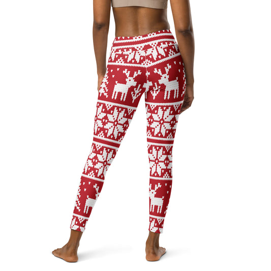 Digital Deer Christmas Yoga Leggings, lioness- love