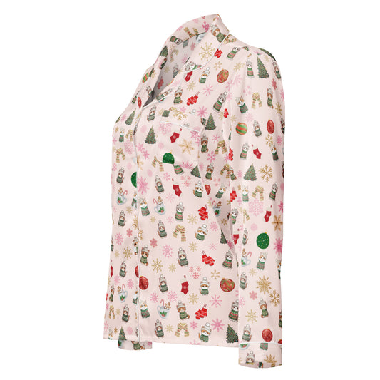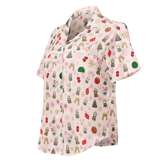 Christmas Cat Silky-Feel Pajama Top, lioness-love