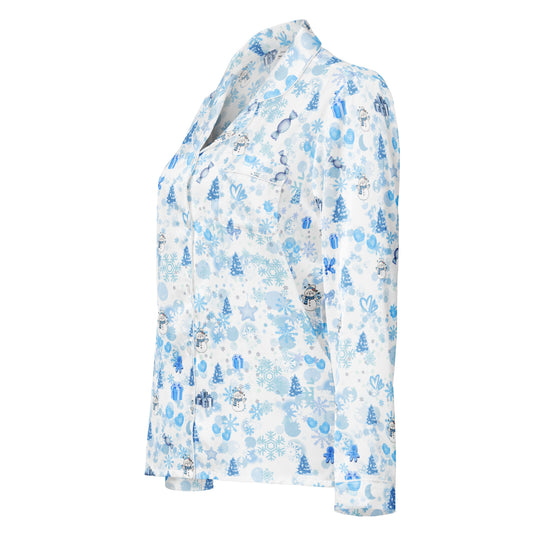 Blue Christmas Long Sleeve Loungewear Top, lioness-love