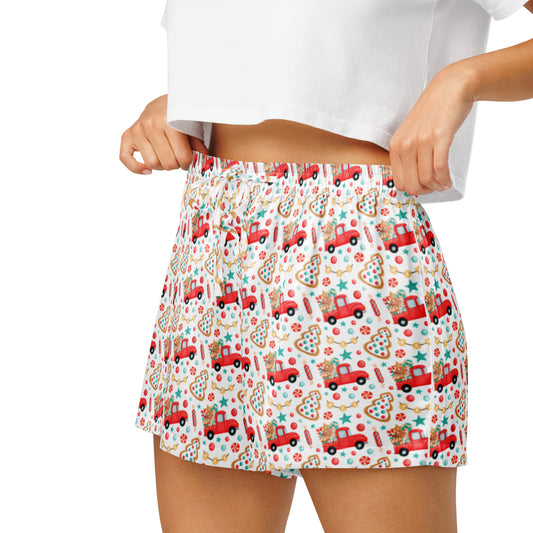 Cute Christmas Truck Silky Pajama Shorts, lioness-love