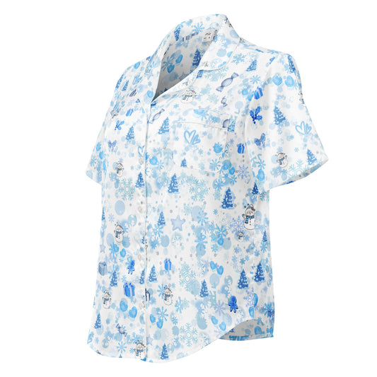 Blue Christmas Short Sleeve Loungewear Top, lioness-love