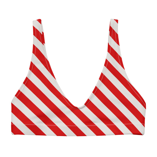 Red and white stripe bikini top for women