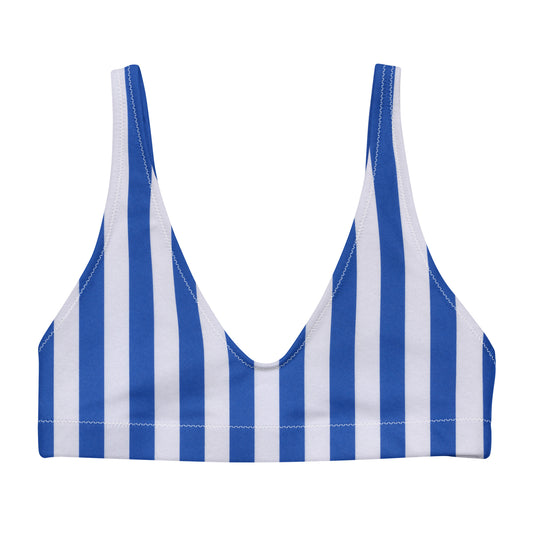 Blue and white vertical striped bikini top, lioness-love