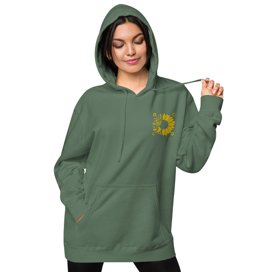 Embroidered Sunflower Unisex Pigment-Dyed Hoodie