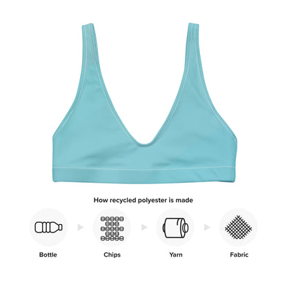 Get this Recycled padded bikini top for your summer adventures! It’s comfortable and includes pads you can remove. To make this top even more versatile, mix and match it with different bikini bottoms for a trendy look.