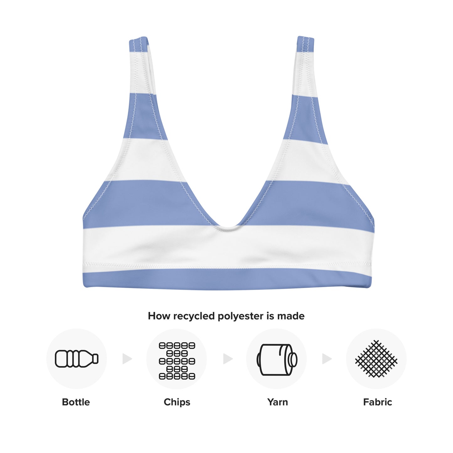 Get this Recycled padded bikini top for your summer adventures! It’s comfortable and includes pads you can remove. To make this top even more versatile, mix and match it with different bikini bottoms for a trendy look.