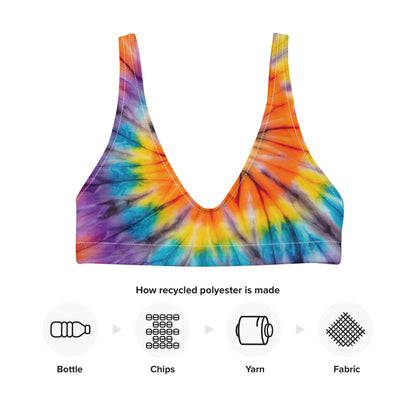 Make waves in the Journey Tie-Dye Bikini Top, designed for women who love bold, bohemian-inspired swimwear. This mesmerizing bikini top blends vibrant tie-dye hues with a flattering, adjustable fit that enhances your natural silhouette. Crafted with meticulous detail and made from recycled, high-quality fabric, it offers supportive comfort, durability, and dreamy summer style.