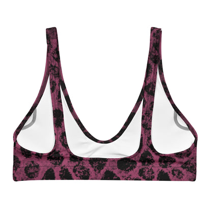 Purple Leopard Print Bikini Top for women, the perfect blend of fierce style and ultimate comfort. Crafted with attention to detail, this bikini top features a vibrant purple hue adorned with a bold leopard print, making it a true standout at the beach or by the pool. The adjustable straps ensure a customizable fit, while the soft, stretchy fabric provides all-day support. With its trendy design and flattering silhouette, this bikini top will make you feel confident and stylish, ready to make a splash wherever you go. Embrace your wild side and elevate your swimwear collection with our Purple Leopard Print Bikini Top.