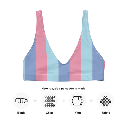 Get this Recycled padded bikini top for your summer adventures! It’s comfortable and includes pads you can remove. To make this top even more versatile, mix and match it with different bikini bottoms for a trendy look.