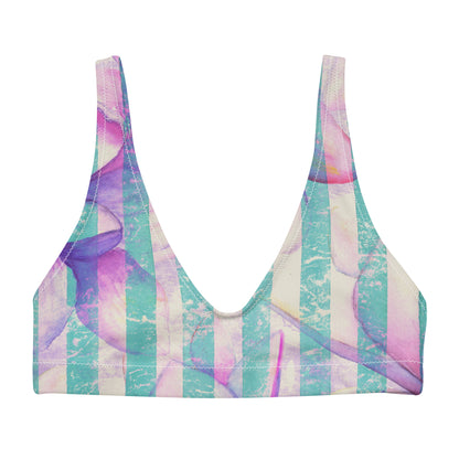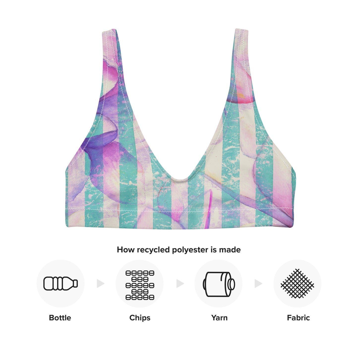 Crafted from soft recycled fabric and double-layered for a smooth, secure feel, this bikini top includes removable padding for adjustable shaping and versatile wear. Whether you're lounging poolside or splashing in the surf, Catalina Grace delivers gentle support with romantic resort-ready charm.