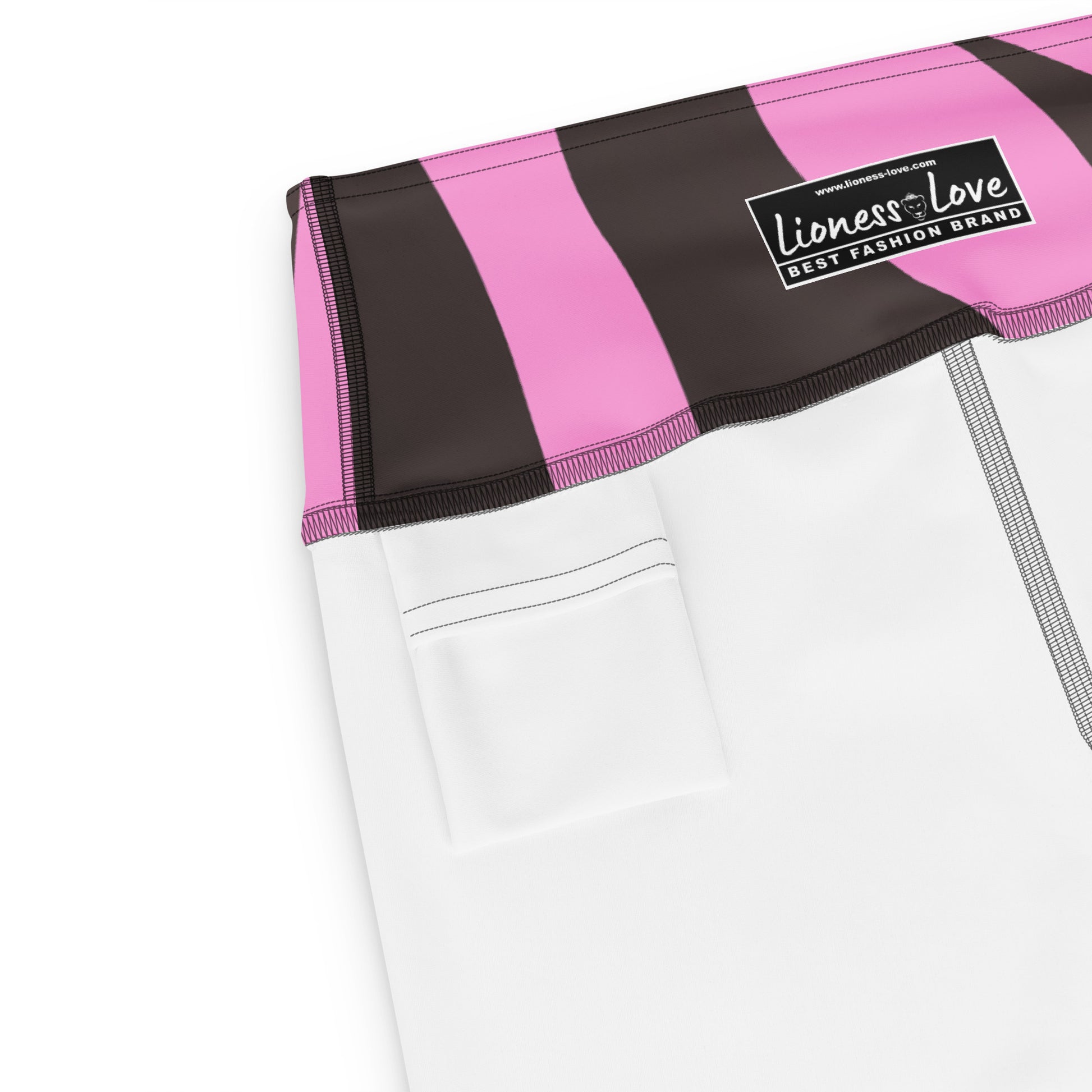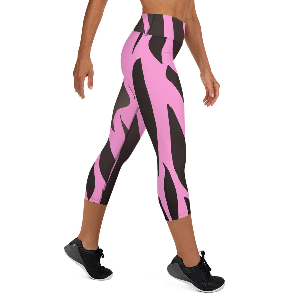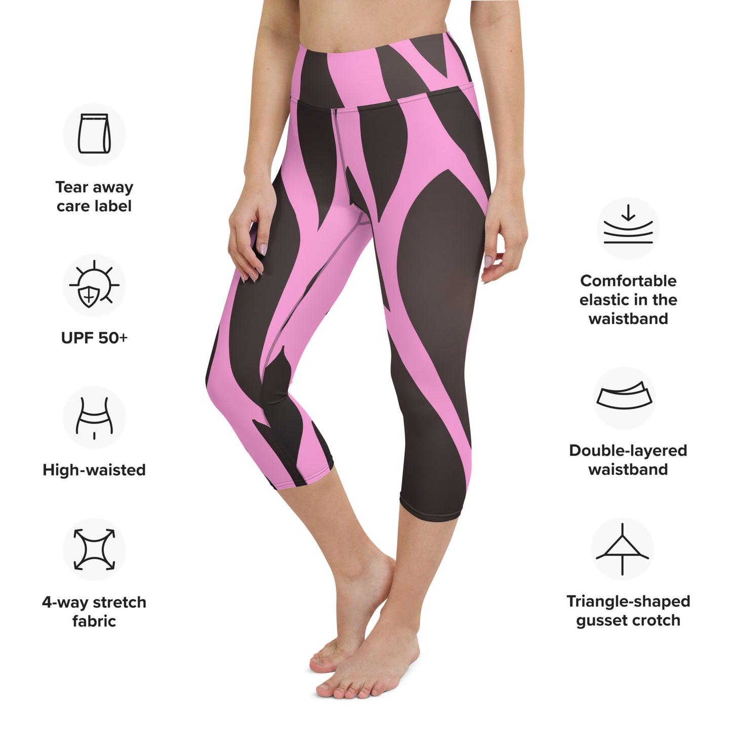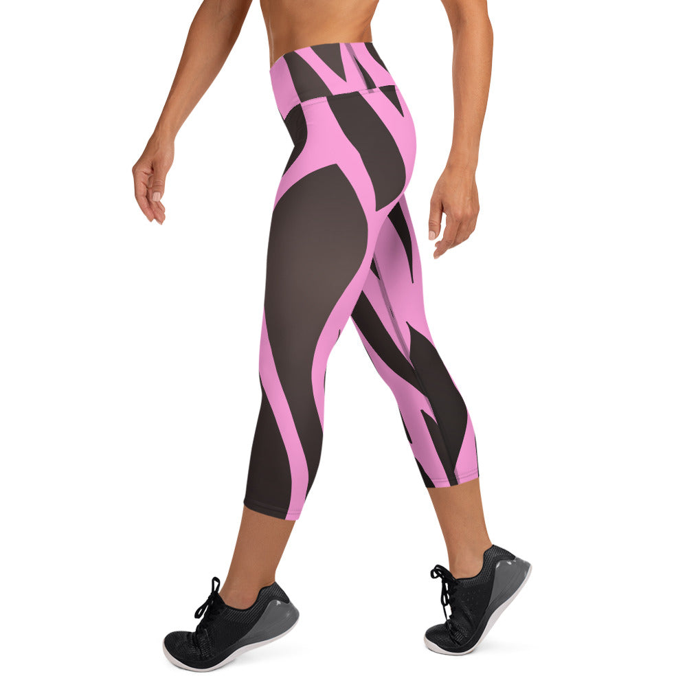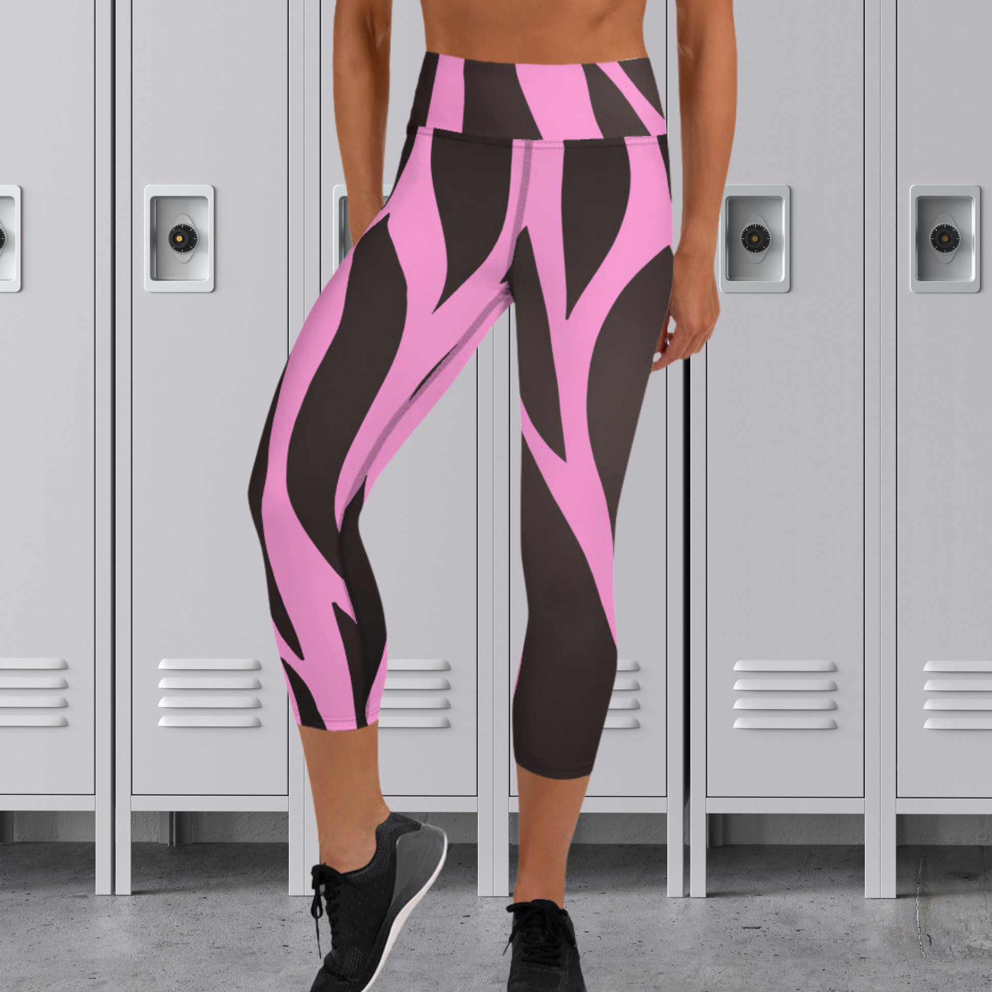 Black and Pink Yoga Capri Leggings Fitness Capri Leggings, lioness-love