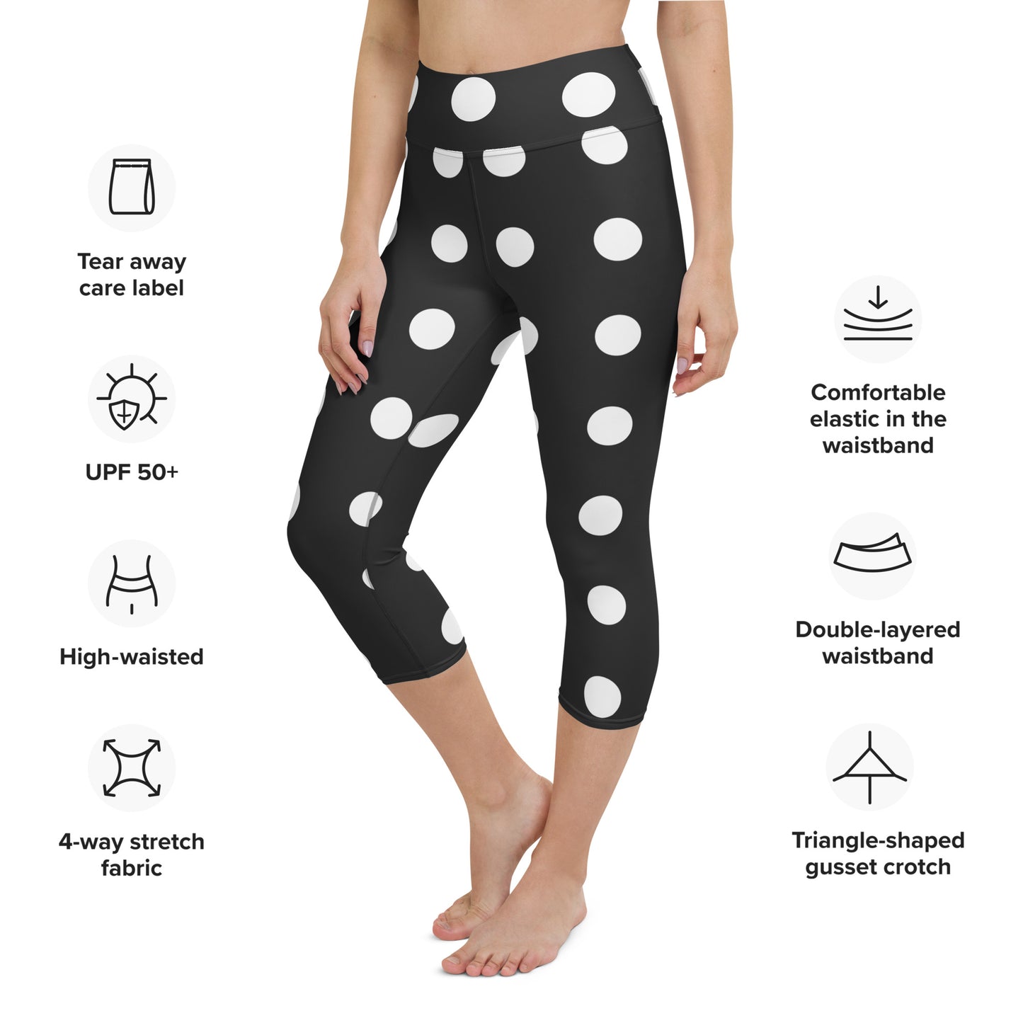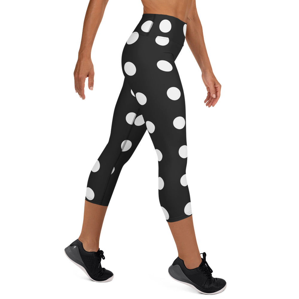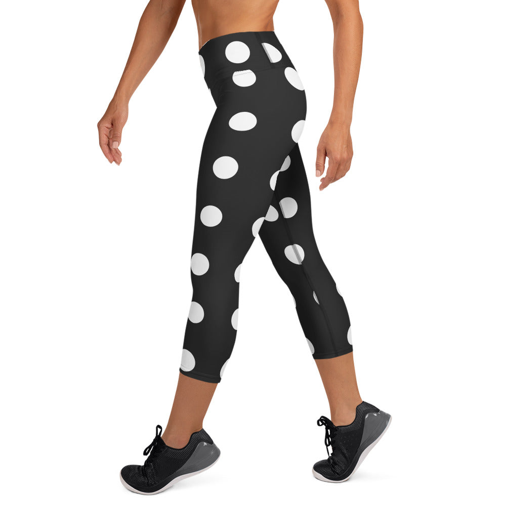 These timeless black-and-white polka dot yoga capri leggings are the perfect blend of comfort and classic style. Made with a high, elastic waistband and buttery-soft four-way stretch fabric, they offer a flattering fit and effortless movement for yoga, gym workouts, or relaxed evenings at home. The mid-calf length adds a chic, sporty touch, making them a versatile staple for any activewear wardrobe.