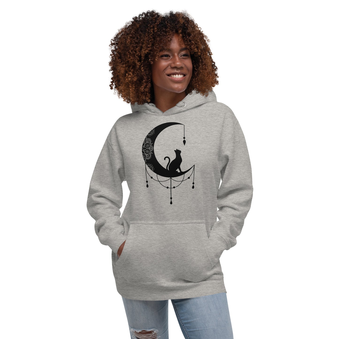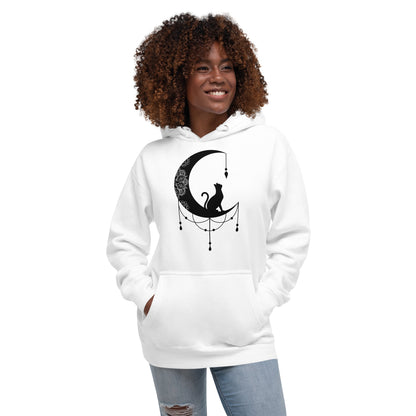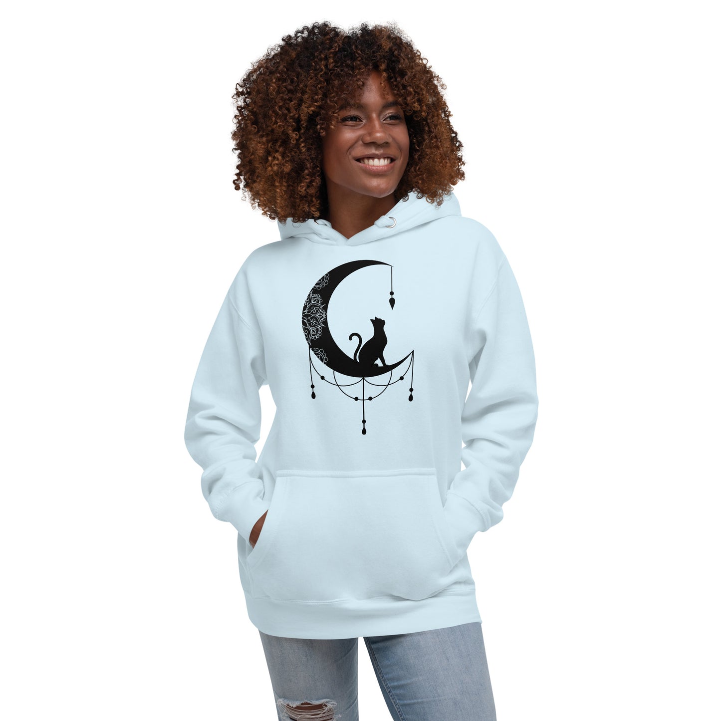 Embrace cozy magic with the Moonbeam Kitty Hoodie, designed for cat lovers who adore celestial style. This unisex hoodie features a charming cat-and-moon graphic and delivers warmth, comfort, and everyday versatility. Made from a soft cotton-blend fleece, it includes a spacious front pouch pocket, matching drawstrings, and a snug 3-panel hood—perfect for chilly evenings, lounging, or layering with your favorite outfits. A must-have for anyone who loves mystical, whimsical feline fashion.