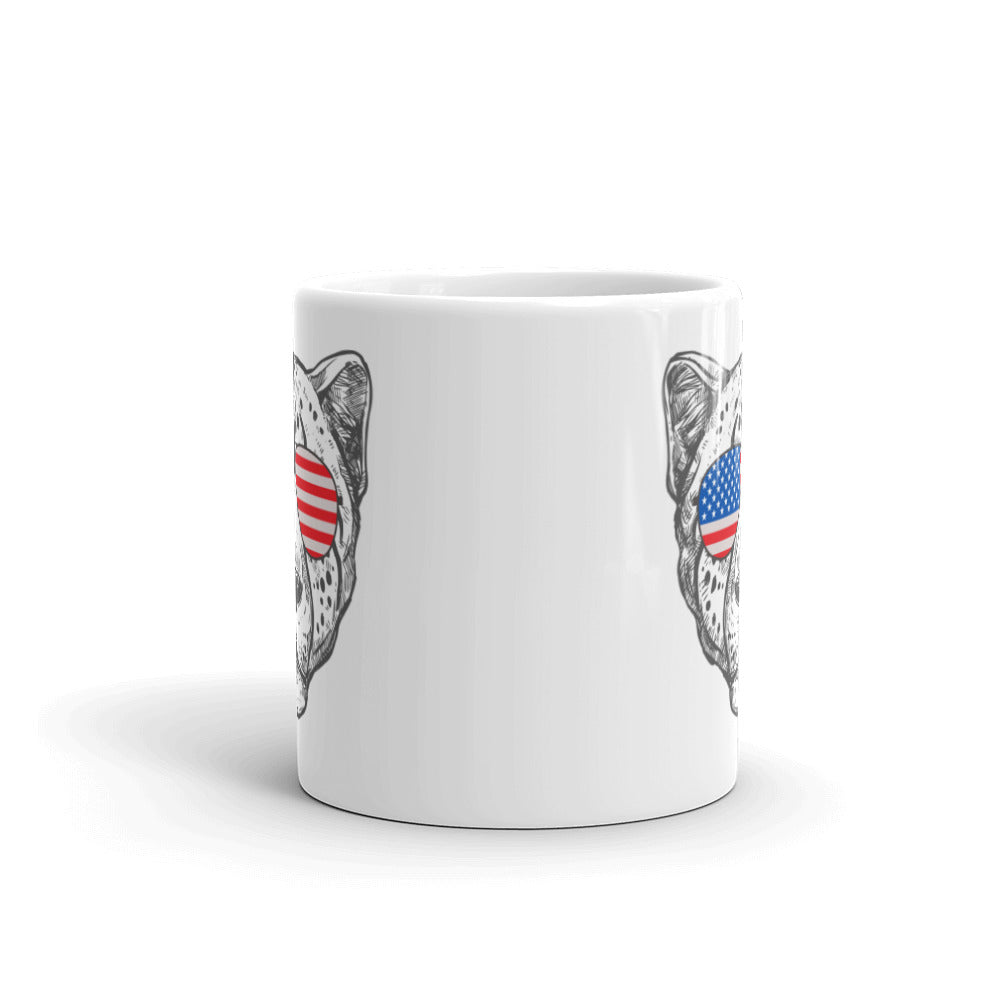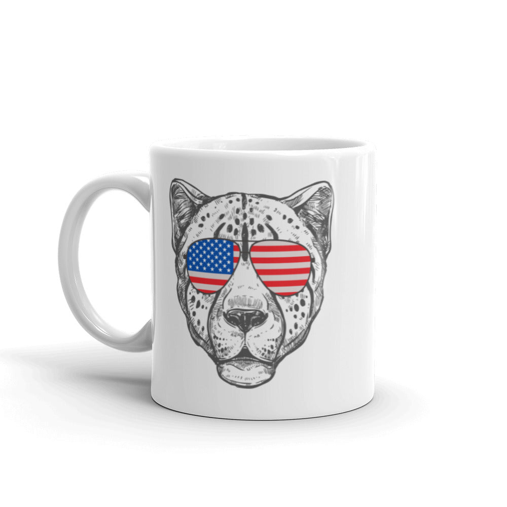 Cheetah Face Coffee Mug with USA Flag Sunglasses Patriotic Animal Print Mug, lioness-love