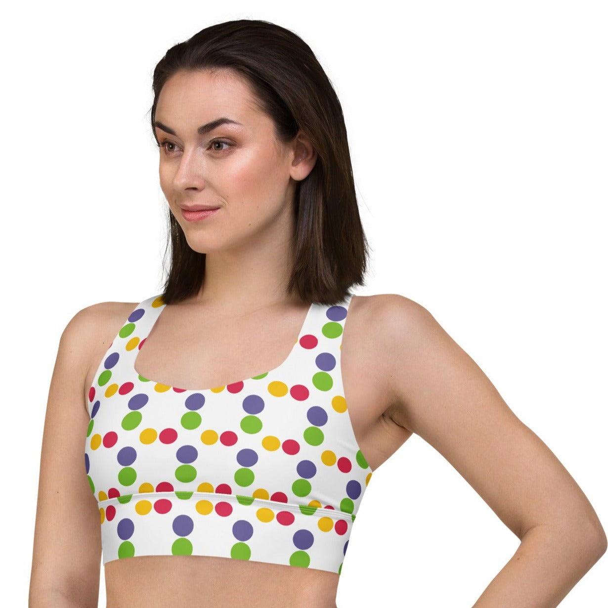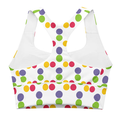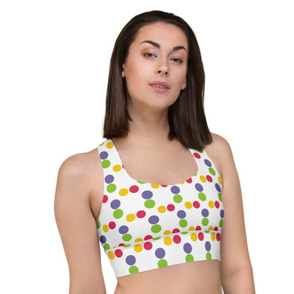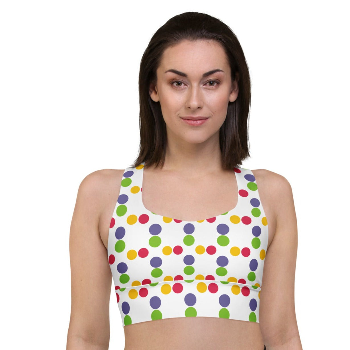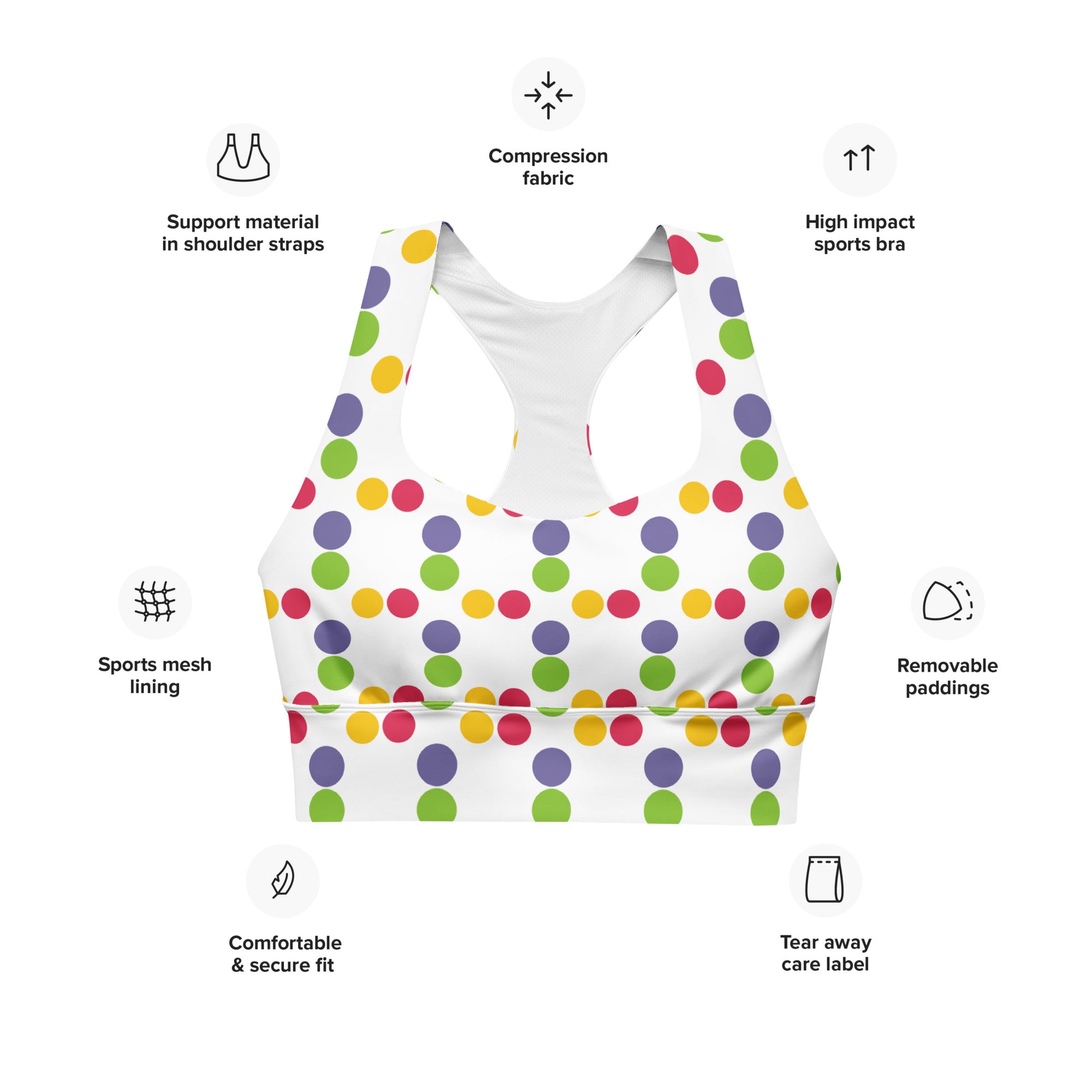 Add timeless charm to your activewear with the Frankie Polka Dot Longline Sports Bra. Designed with premium compression fabric and a flattering longline silhouette, this bra delivers reliable support while bringing a playful, retro-inspired style to your workout wardrobe.
