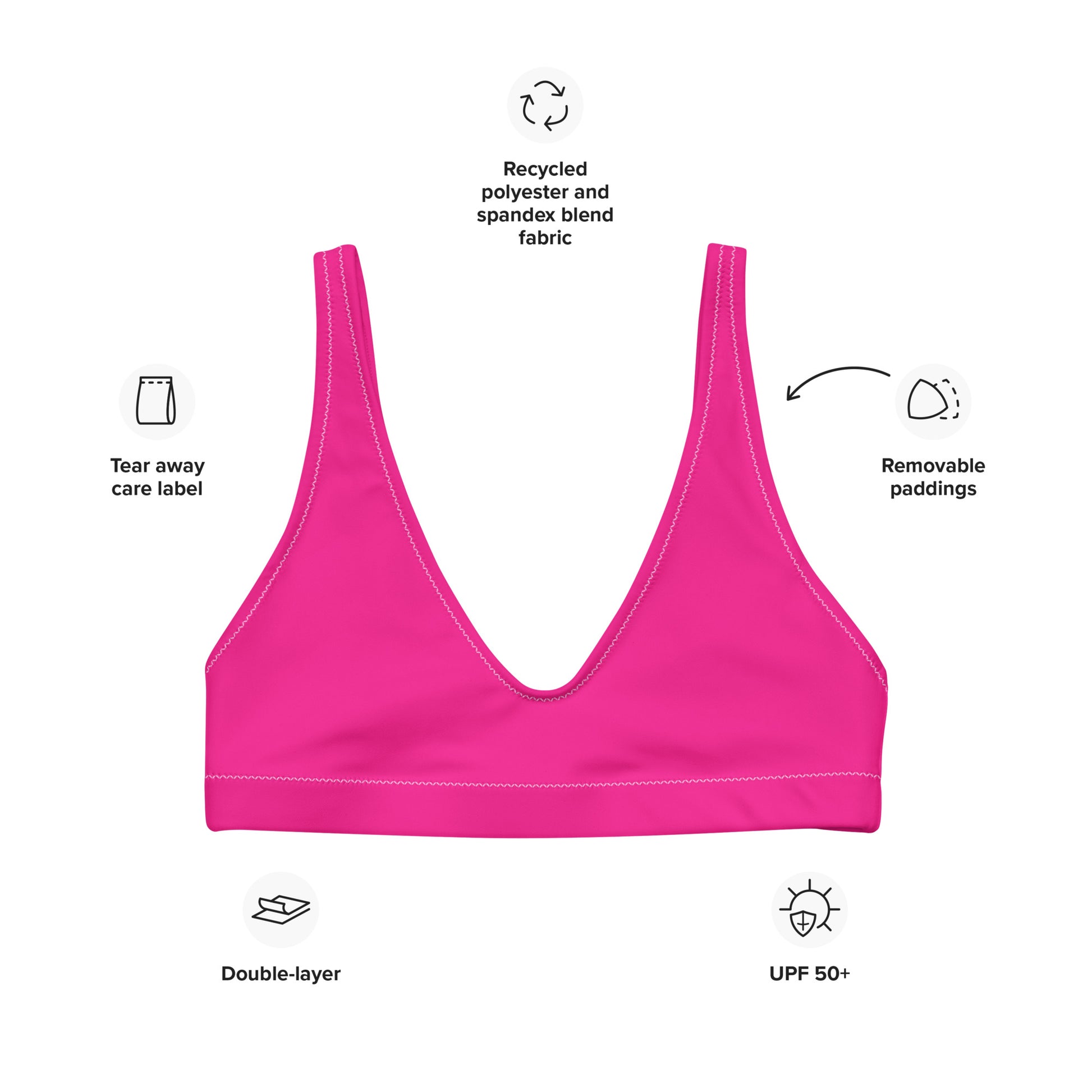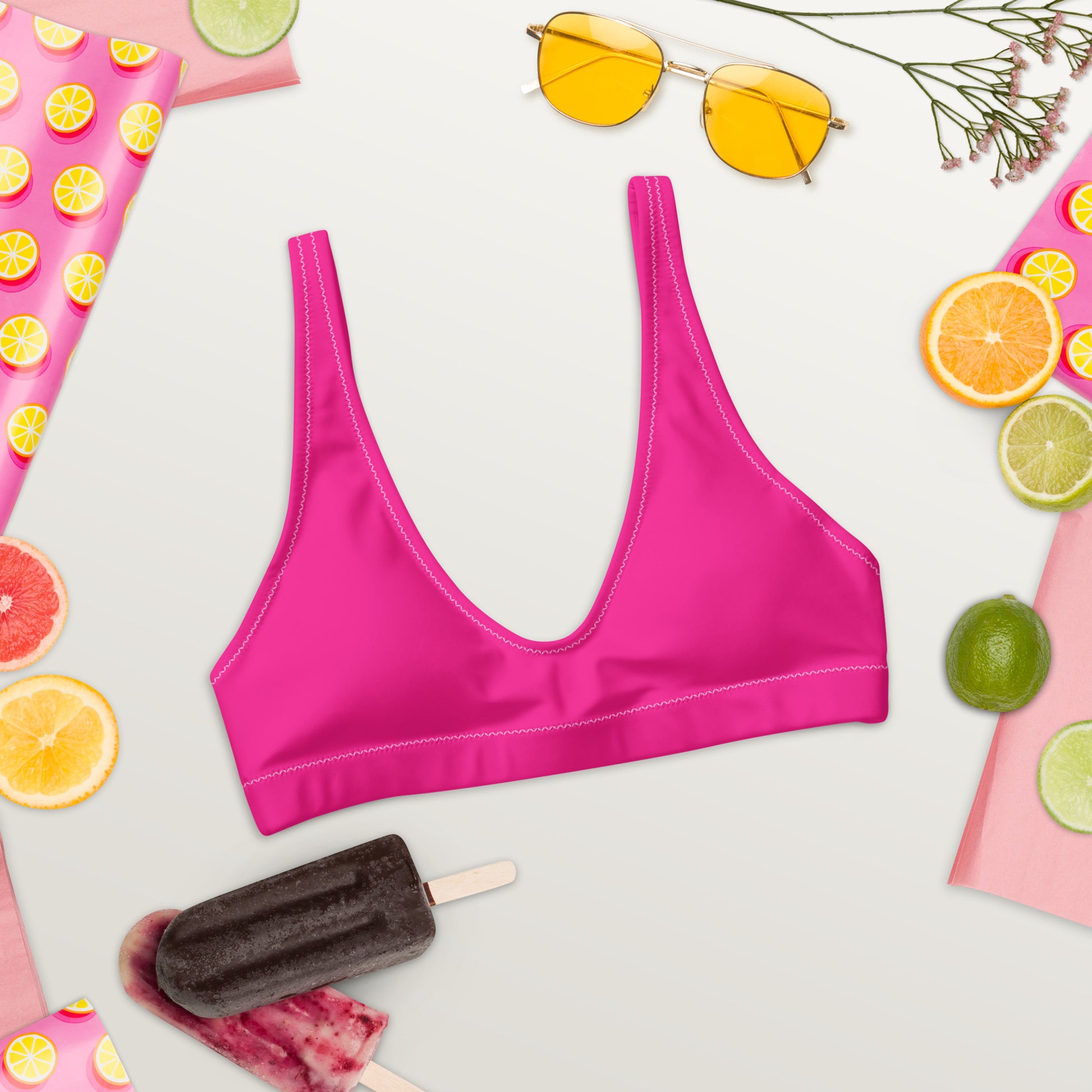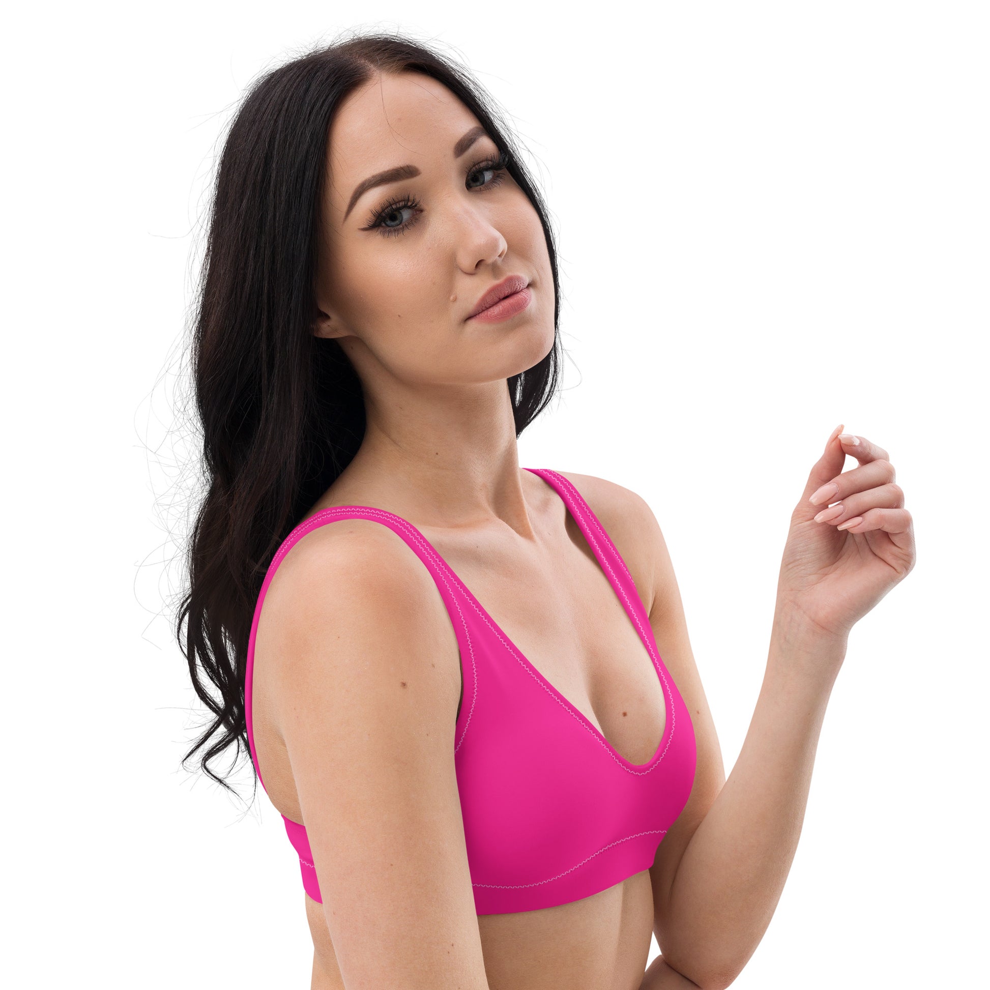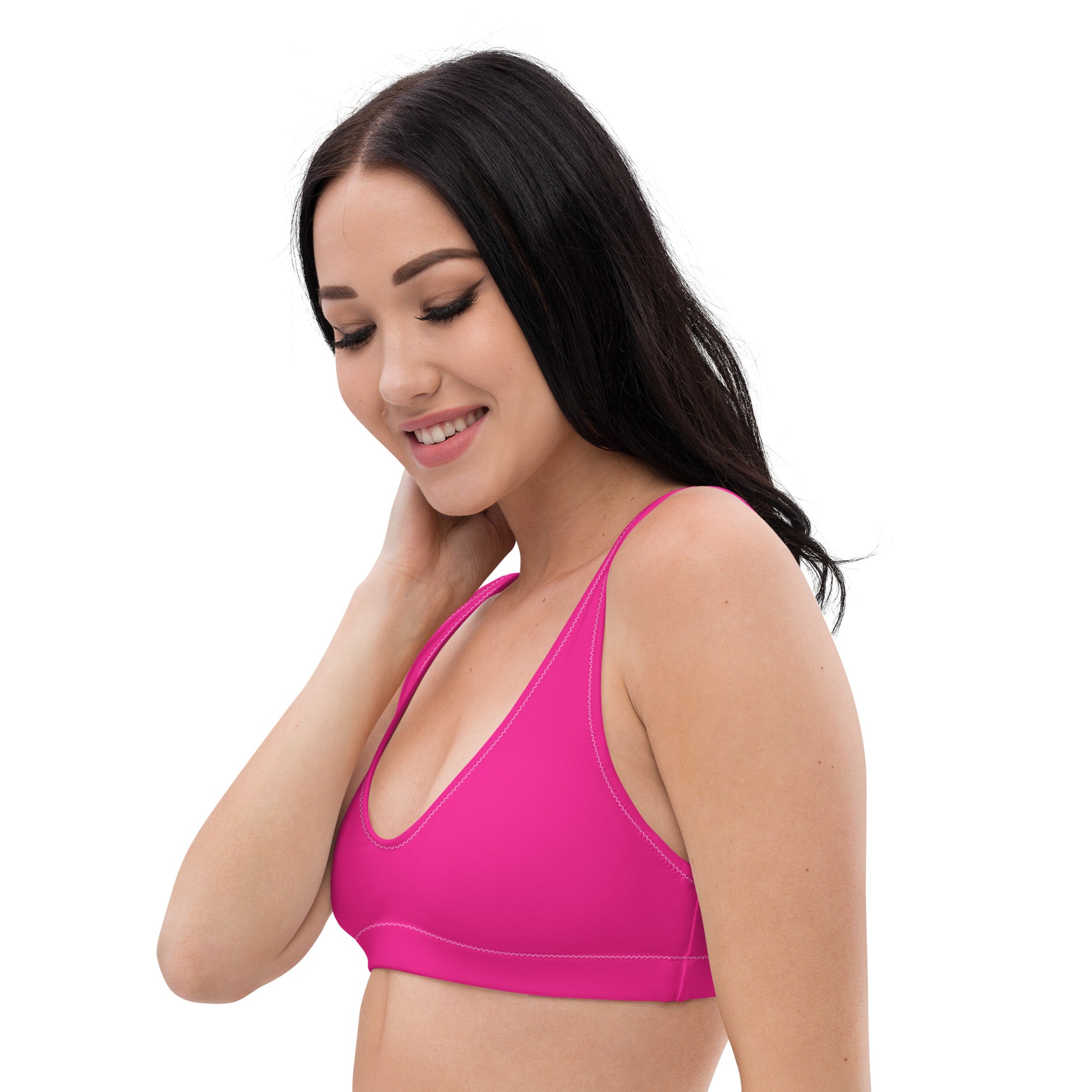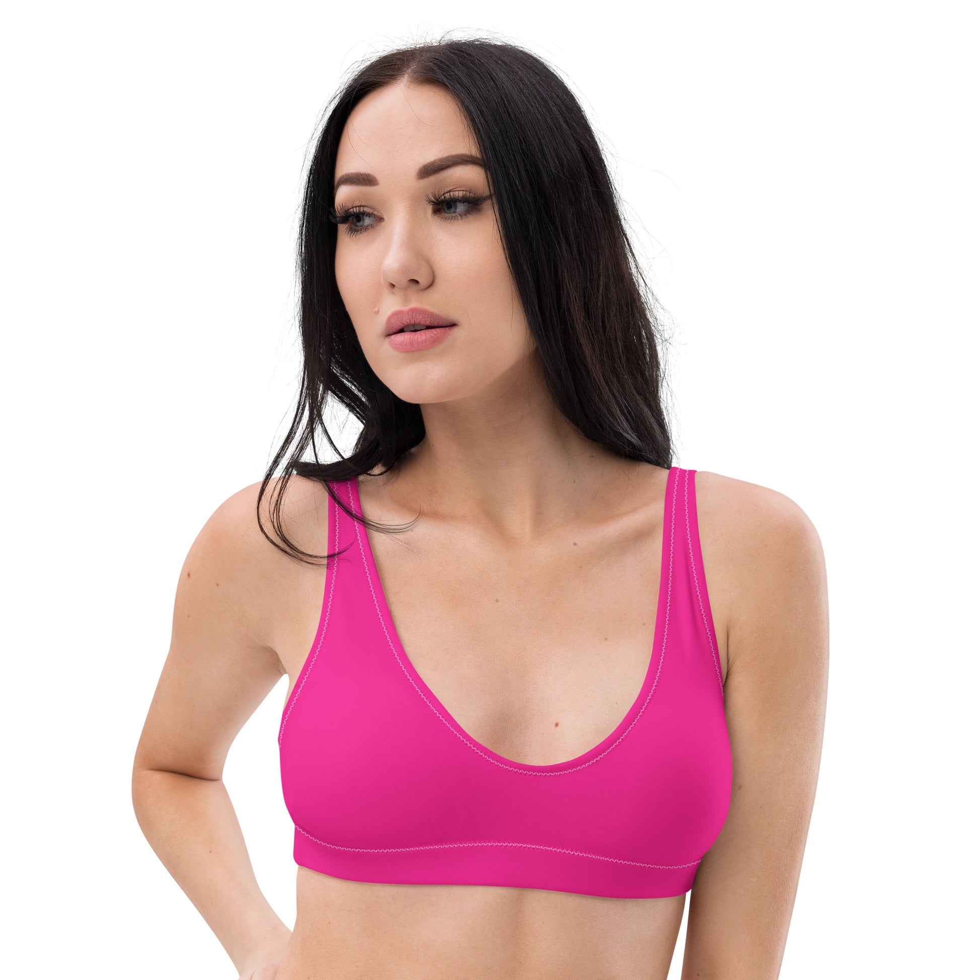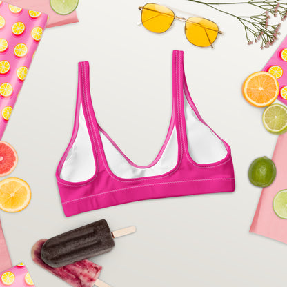 Mix and match it with your favorite bikini bottoms for endless styling options. Embrace bold color, sustainable fashion, and summer vibes with the Kimberly Hot Pink Bikini Top—your new swimwear essential.