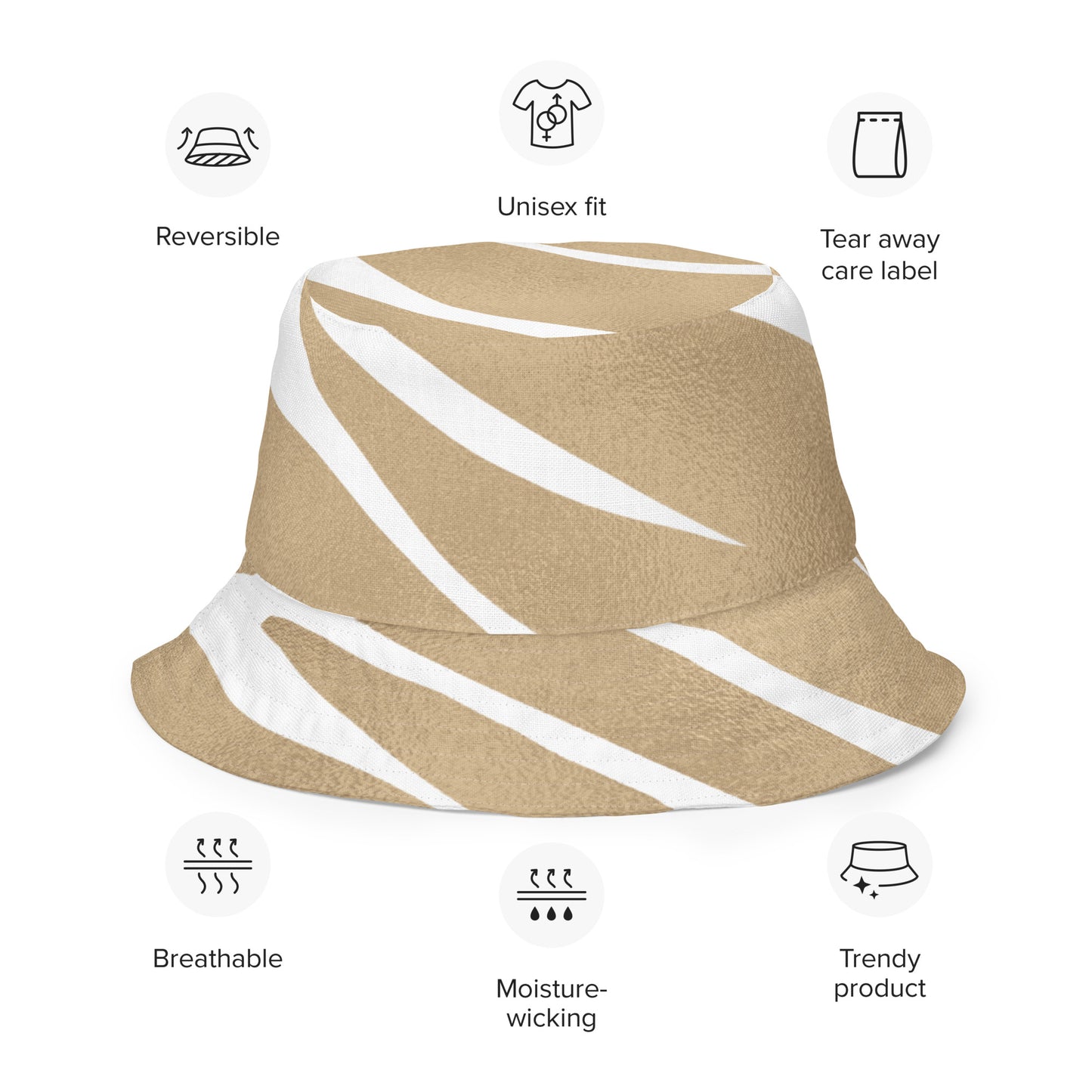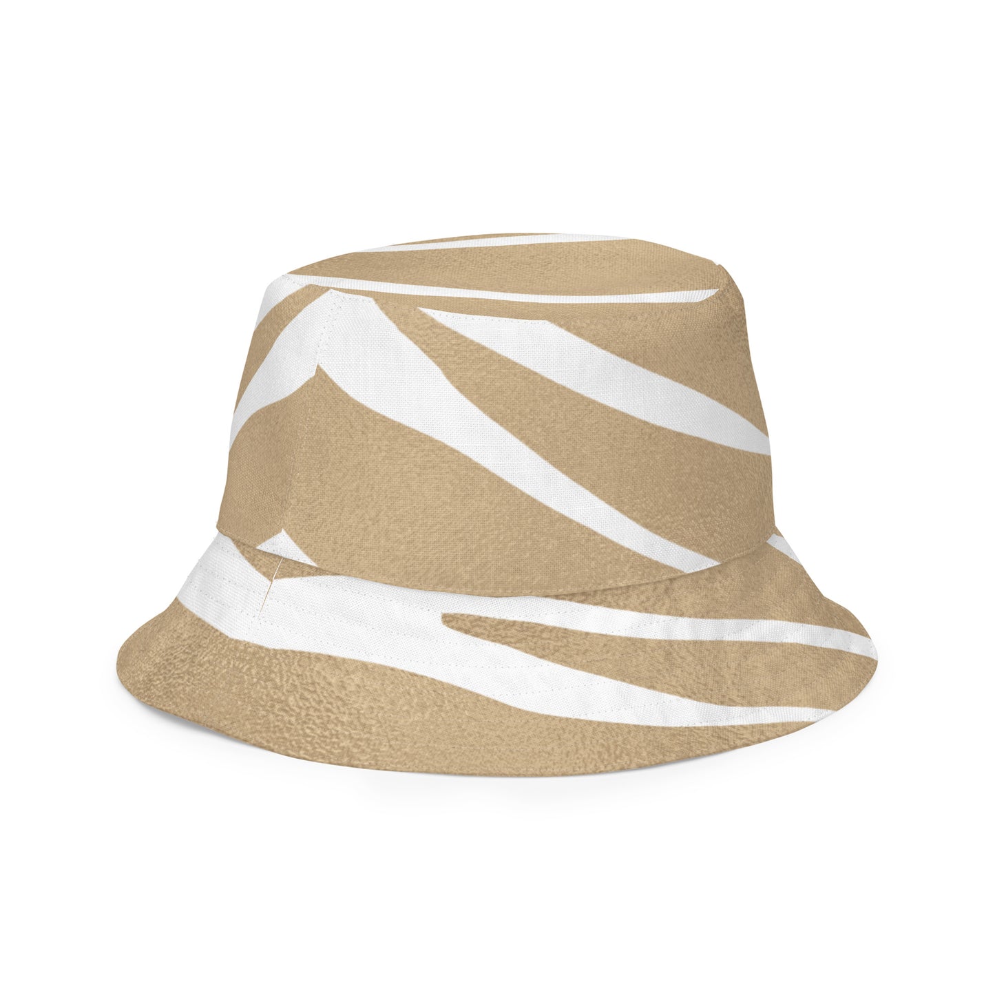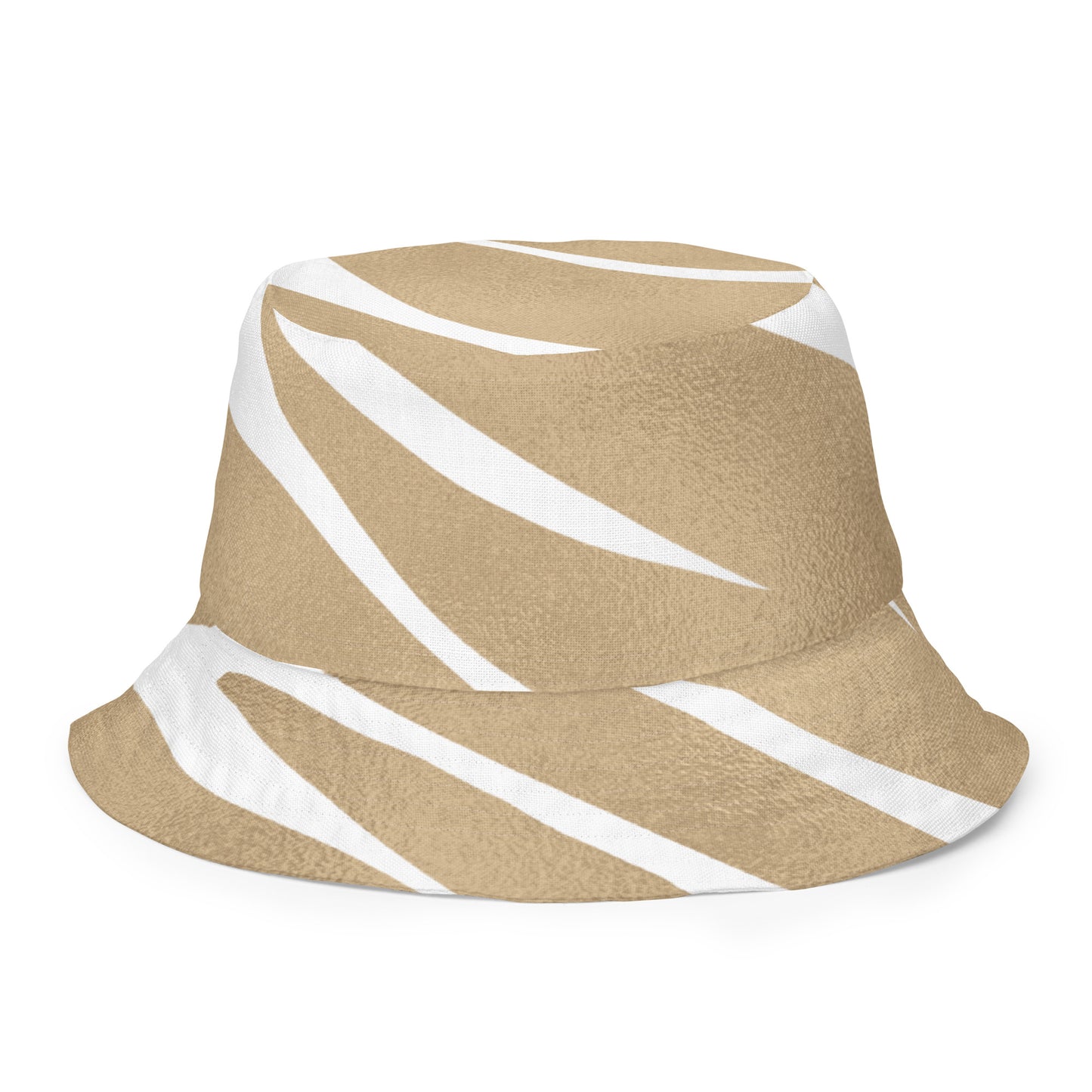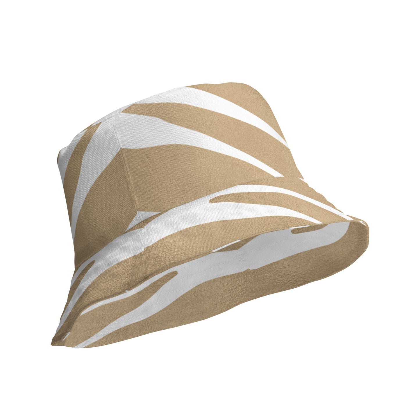 Embrace Versatile Elegance: Gold and White Animal Print Bucket Hat. Effortlessly pairable with any outfit, this breathable premium fabric hat promises to elevate your streetwear game as your ultimate go-to accessory.