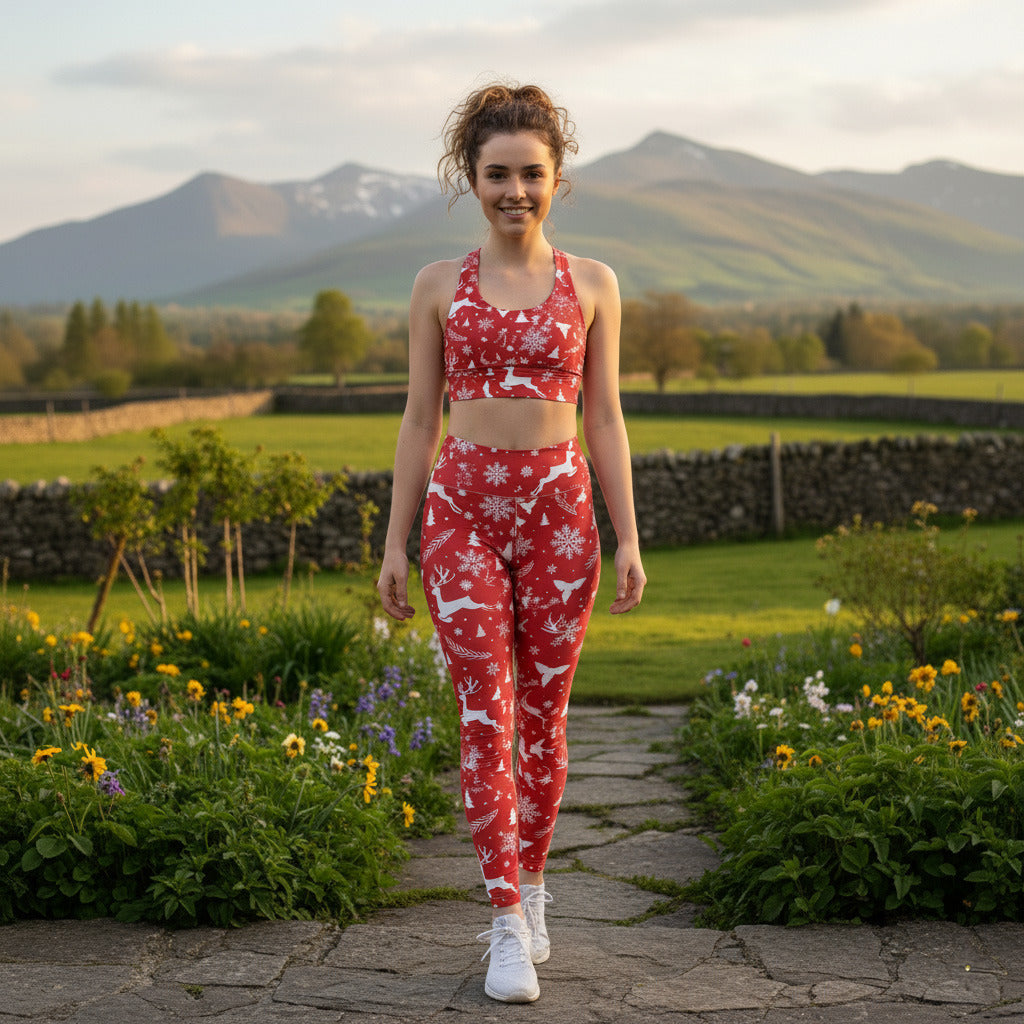 Shine bright this season in the Holiday Halo Sports Bra, where festive flair meets flawless support. Designed with a playful mix of reindeer and angel motifs, this longline sports bra delivers high-performance compression and all-day comfort. Whether you’re working out, running errands, or styling it for a streetwear moment, Holiday Halo keeps you supported and glowing with confidence.