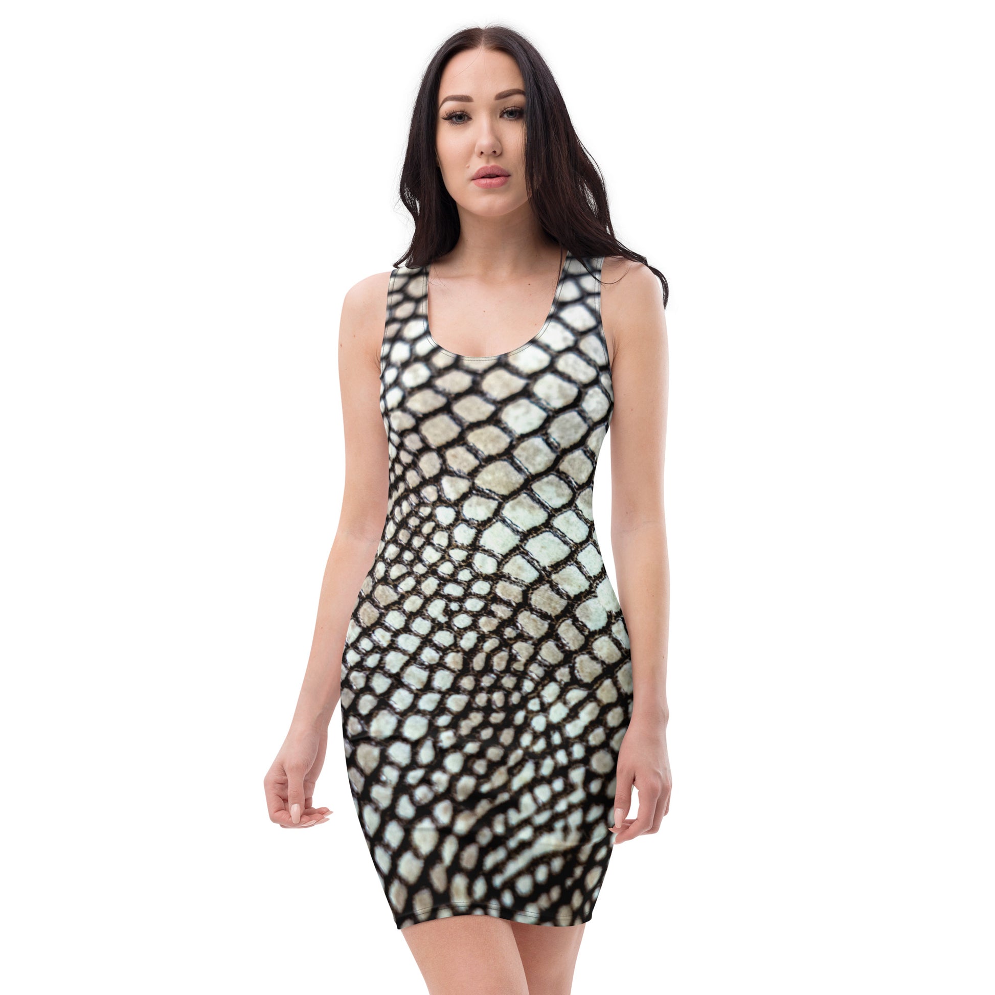 Iridescent Serpent Snake Print Elegant Fitted Dress, lioness-love.com
