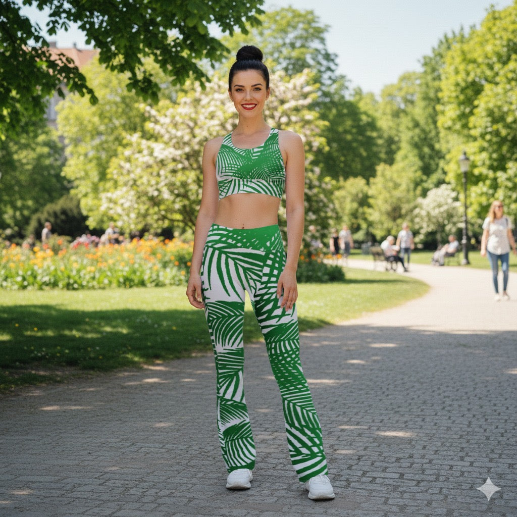 Pair it with the Kalani Palm Flare Leggings or Skater Dress for a coordinated tropical ensemble that turns heads on and off the mat.