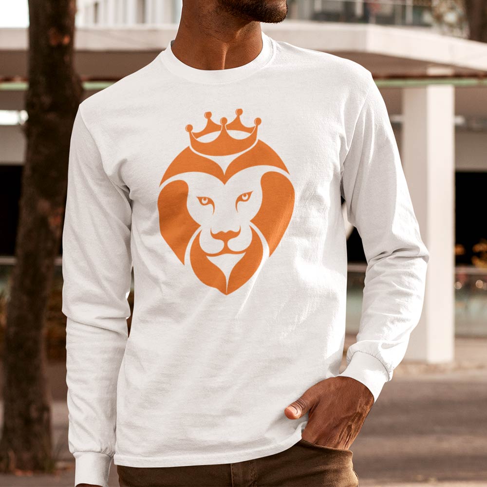 Crowned Lion is a beautifully designed lion lovers long sleeve tee and great comfort to wear to a yoga class, to the gym or on the go. This comfortable long sleeve tee will definitely be one of your favorites! Enrich your wardrobe with a versatile long sleeve tee. For a casual look, combine it with your favorite jeans, and layer it with a button-up shirt, a zip-up hoodie, or a snazzy jacket. Dress it up with slacks or chinos to achieve a more professional look.