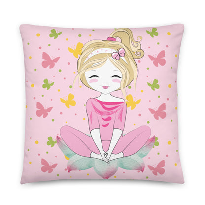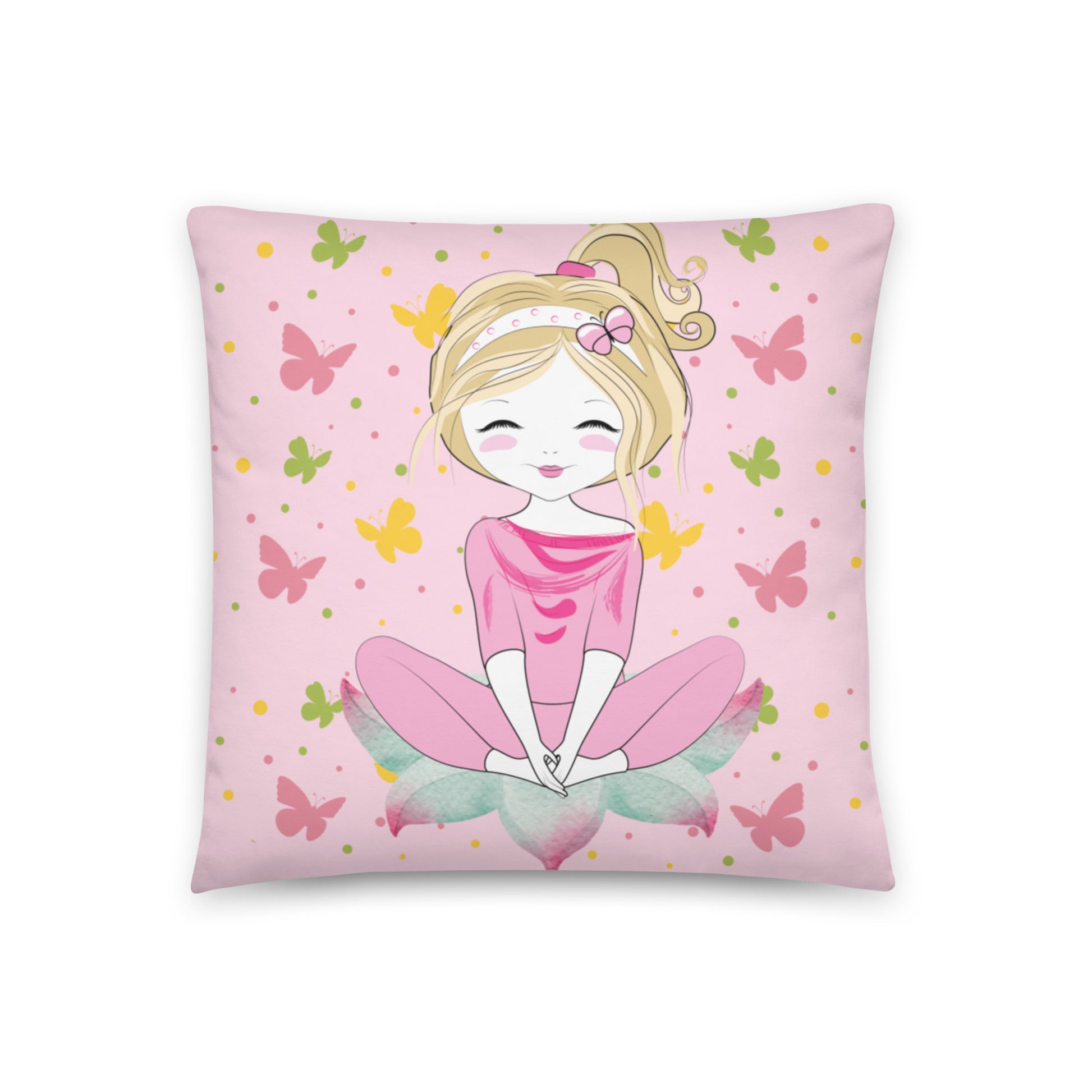 A strategically placed accent can bring the whole room to life, this meditating girl and butterflies pillow is just what you need to do that. What's more, the soft, machine-washable case with the shape-retaining insert is a joy to have long afternoon naps on. Makes a great gift for butterfly lovers and for a girls room.