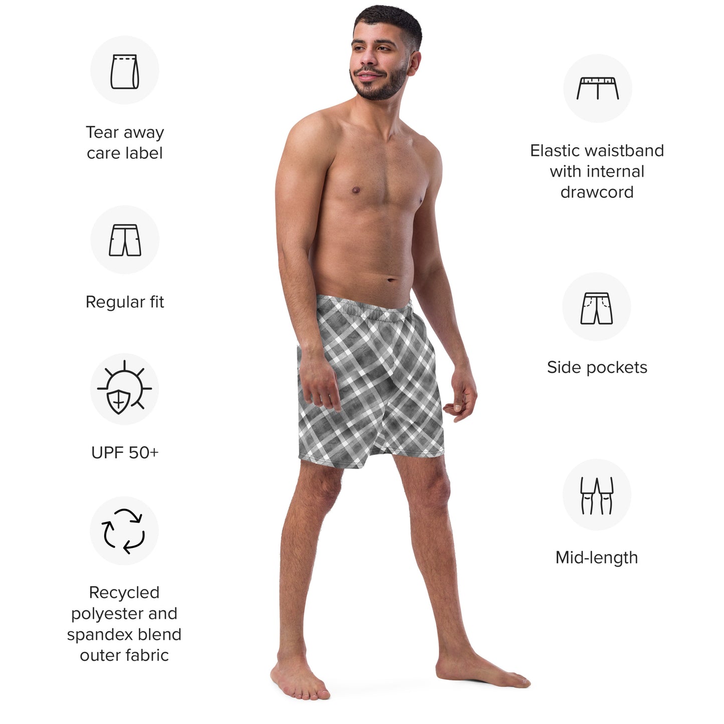 Gingham Swim Trunks for men, the perfect blend of classic design and modern comfort. Crafted with meticulous attention to detail, these swim trunks feature a timeless gingham pattern that exudes sophistication and charm. Made from high-quality, quick-drying fabric, they offer superior comfort both in and out of the water. The adjustable drawstring waist ensures a personalized fit, while the mesh lining provides added support. Whether you're lounging by the pool or hitting the beach, these Gingham Swim Trunks will make a statement of style and confidence. Dive into summer with these must-have swimwear essentials.