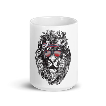 Whether you're drinking your morning coffee, evening tea, hot cocoa or something in between – this stars and stripes Cool Lion mug's for you and makes for a great lion lovers gift! It's sturdy and glossy with a vivid print that'll withstand the microwave and dishwasher.