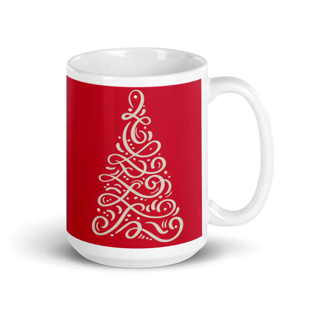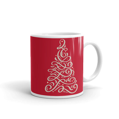 Elegant Christmas Tree Scroll Gift Mug Red, lioness-love