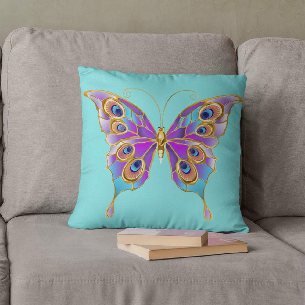 A strategically placed accent can bring the whole room to life with this beautiful butterfly design with a soft blue background pillow is just what you need to do that. Mix and match styles for a beautiful pop in a room, What's more, the soft, machine-washable case with the shape-retaining insert is a joy to have long afternoon naps on.