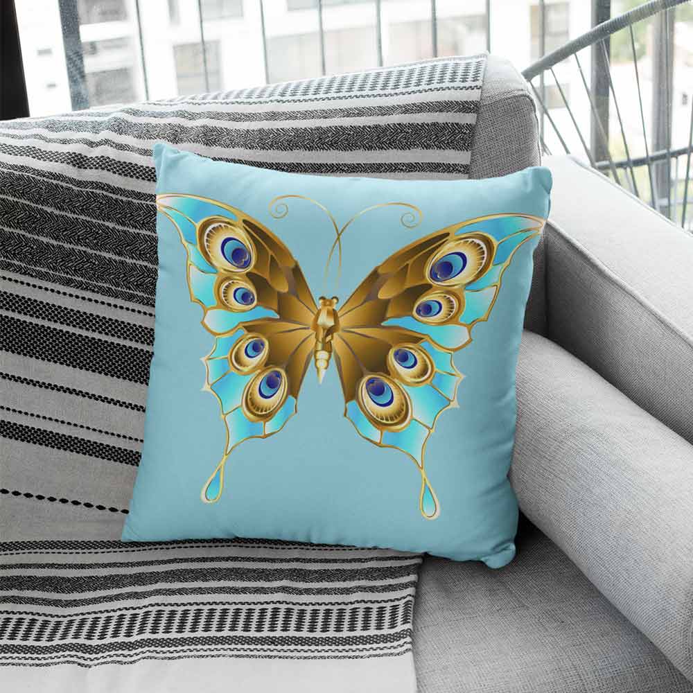 A strategically placed accent can bring the whole room to life with this beautiful butterfly design with a soft blue background pillow is just what you need to do that. Mix and match styles for a beautiful pop in a room, What's more, the soft, machine-washable case with the shape-retaining insert is a joy to have long afternoon naps on.