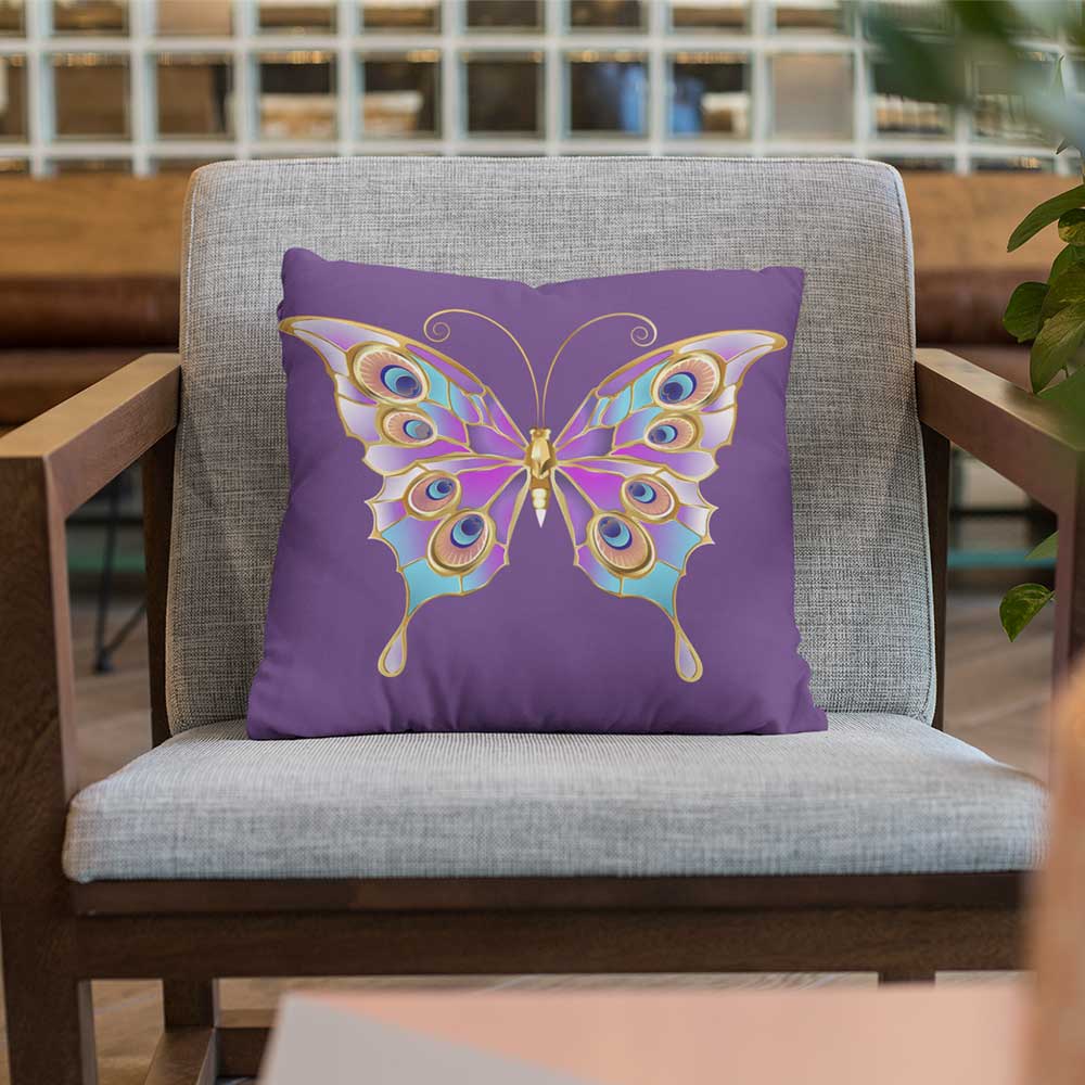 Gold Butterfly Peacock Cushion Cover, a true statement piece for adding a touch of opulence and elegance to your living space. This stunning cushion cover features a captivating combination of gold butterflies and peacock feathers, creating a mesmerizing and enchanting design. Crafted with attention to detail, it offers a soft and luxurious feel, perfect for both comfort and style. Made from high-quality materials, it ensures durability and longevity, while the hidden zipper allows for easy removal and cleaning. Whether placed on a sofa, armchair, or bed, our Gold Butterfly Peacock Cushion Cover will instantly elevate your home decor and become the focal point of any room.