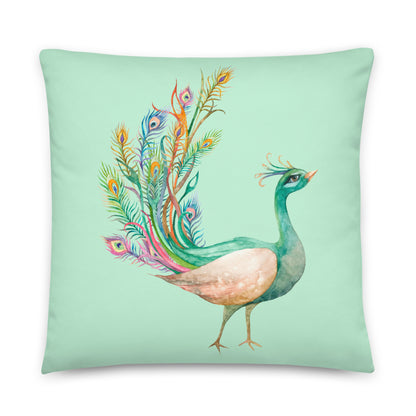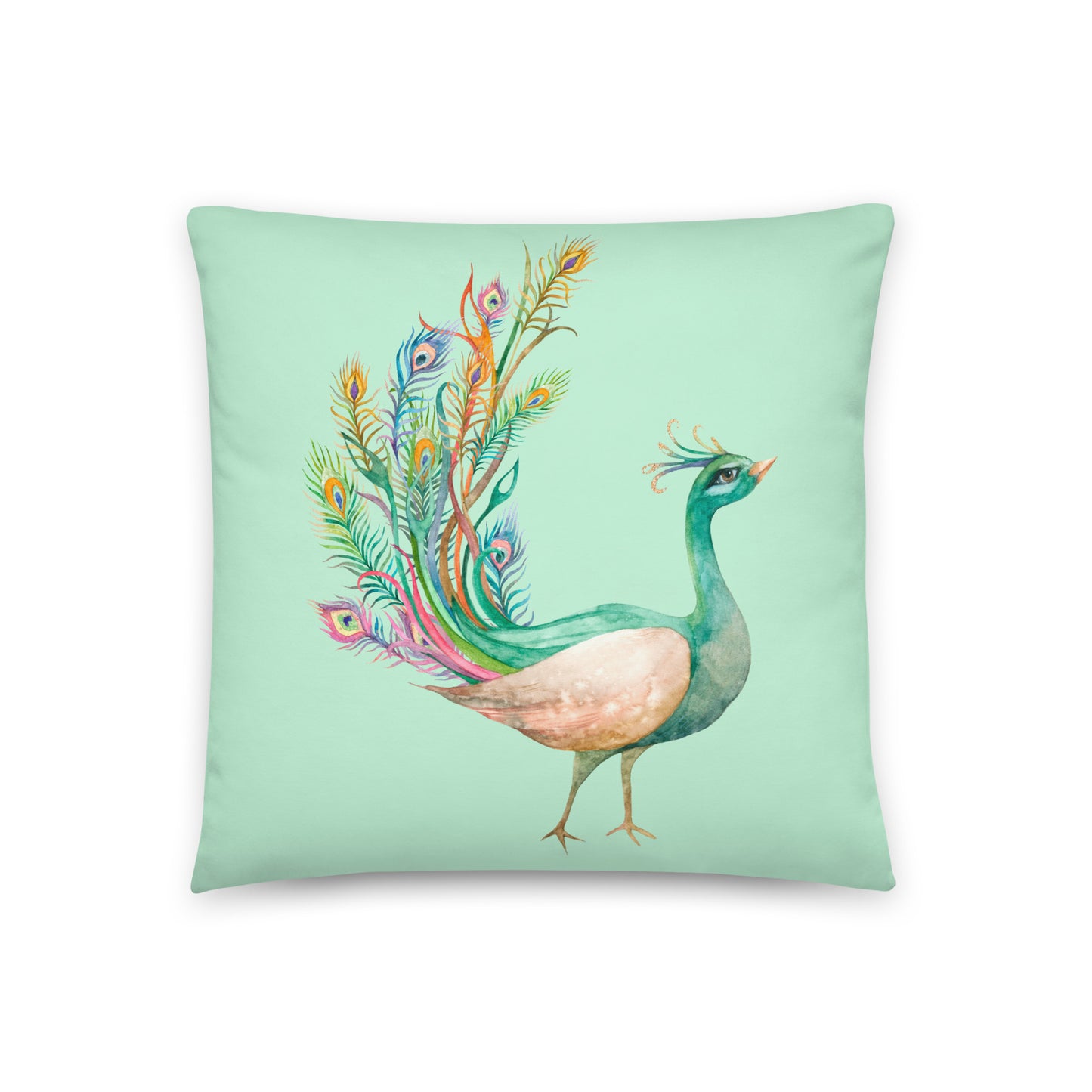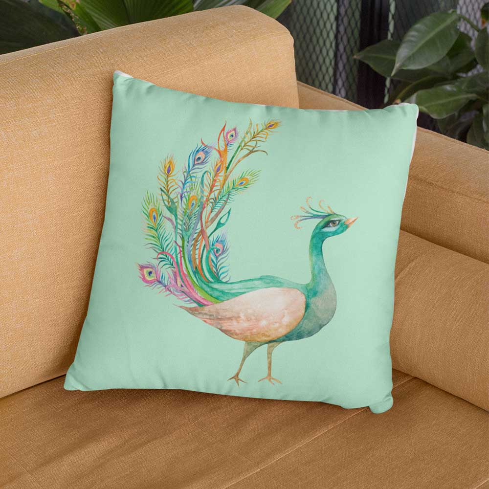 A strategically placed accent can bring the whole room to life, and this colorful peacock on a mint colored background pillow is just what you need to do that. Mix and match styles for a beautiful pop in a room, What's more, the soft, machine-washable case with the shape-retaining insert is a joy to have long afternoon naps on.