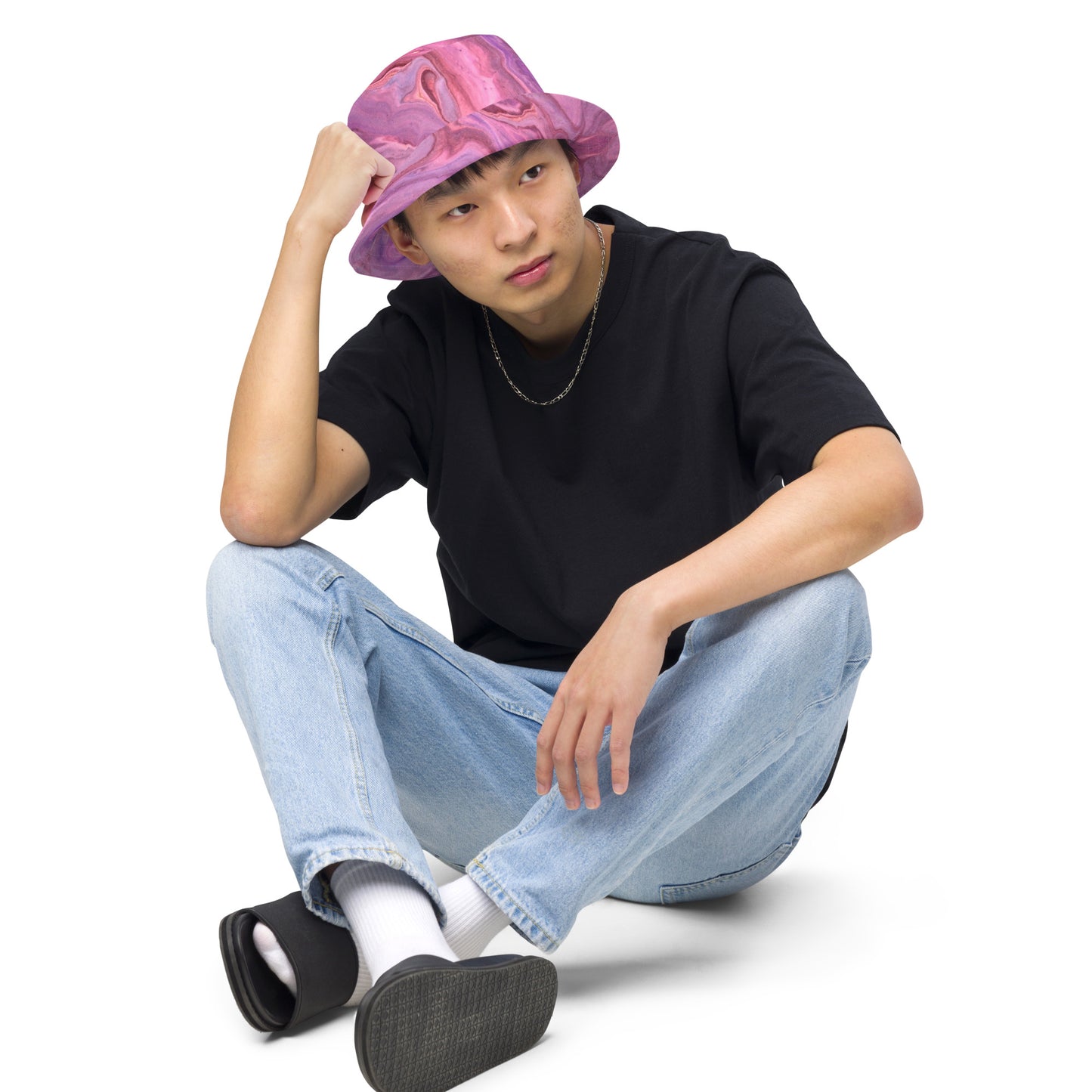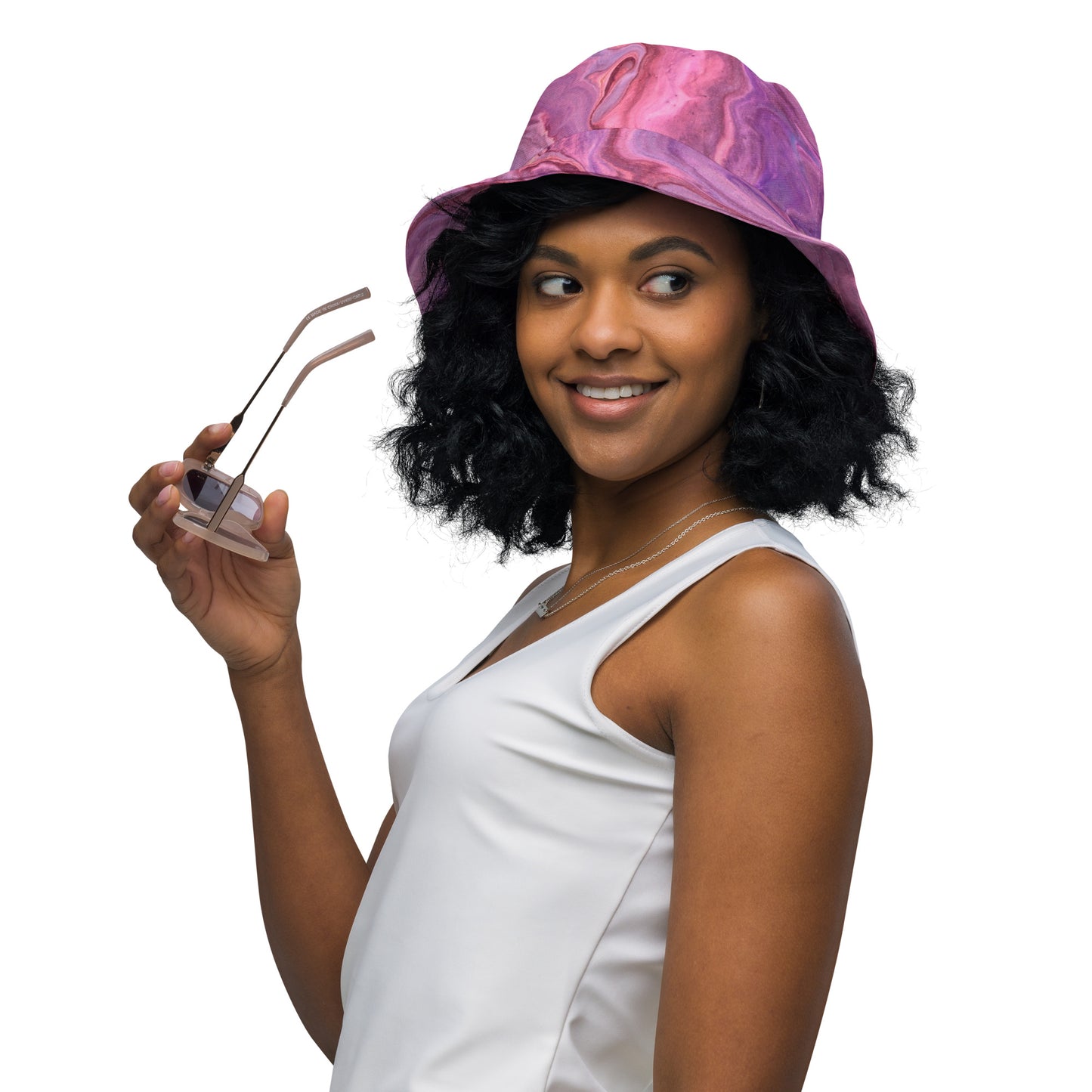 Marbled Elegance with Our Pink Marble Print Bucket Hat, lioness-love
