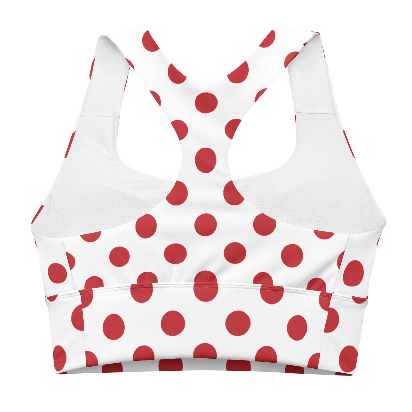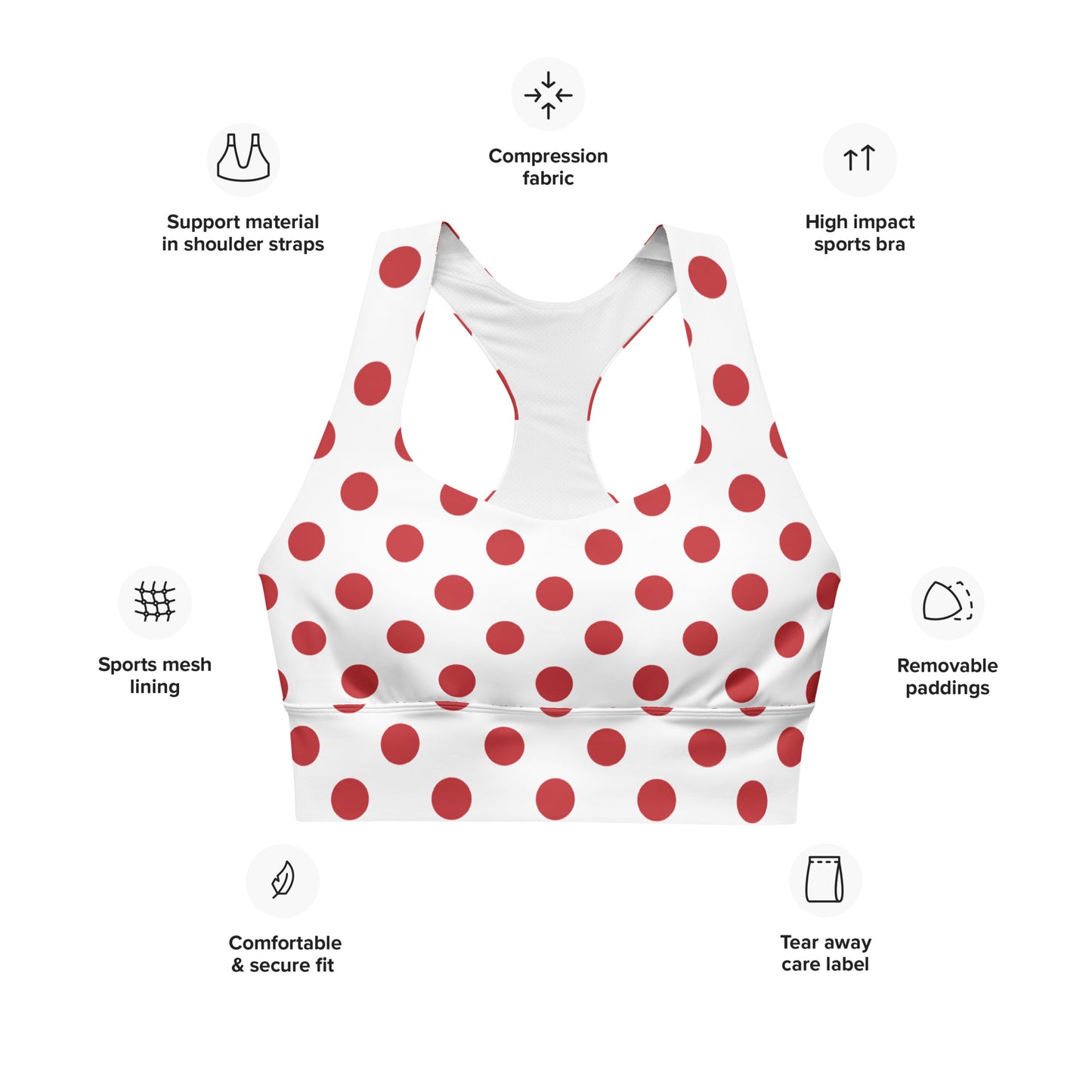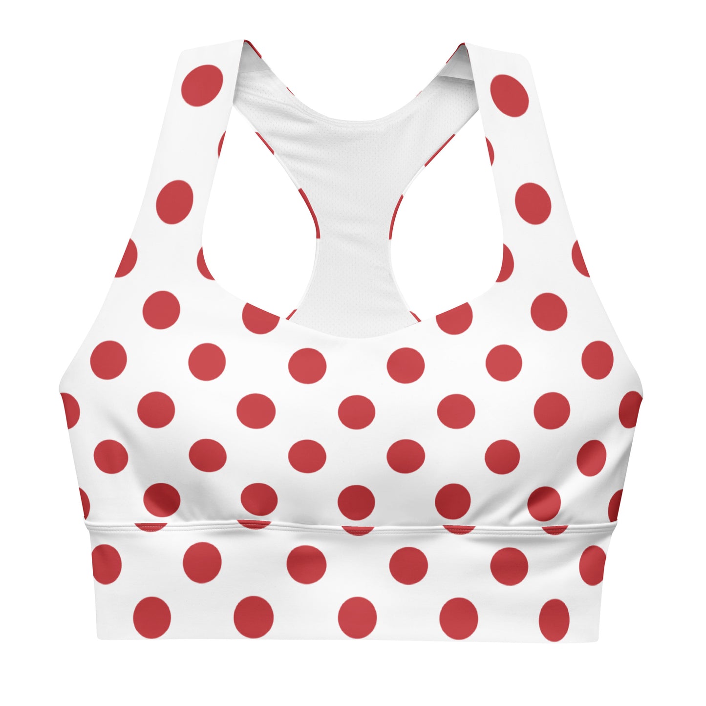Bright, bold, and beautifully supportive — the Rebecca Red Polka Dot Sports Bra brings playful charm to your activewear lineup. Designed with compression fabric, a flattering longline silhouette, and double-layered support, Rebecca keeps you secure through every run, lift, stretch, and sunny-day streetwear moment. The vintage-inspired red polka dot print adds a fun, feminine touch that turns heads wherever you go.