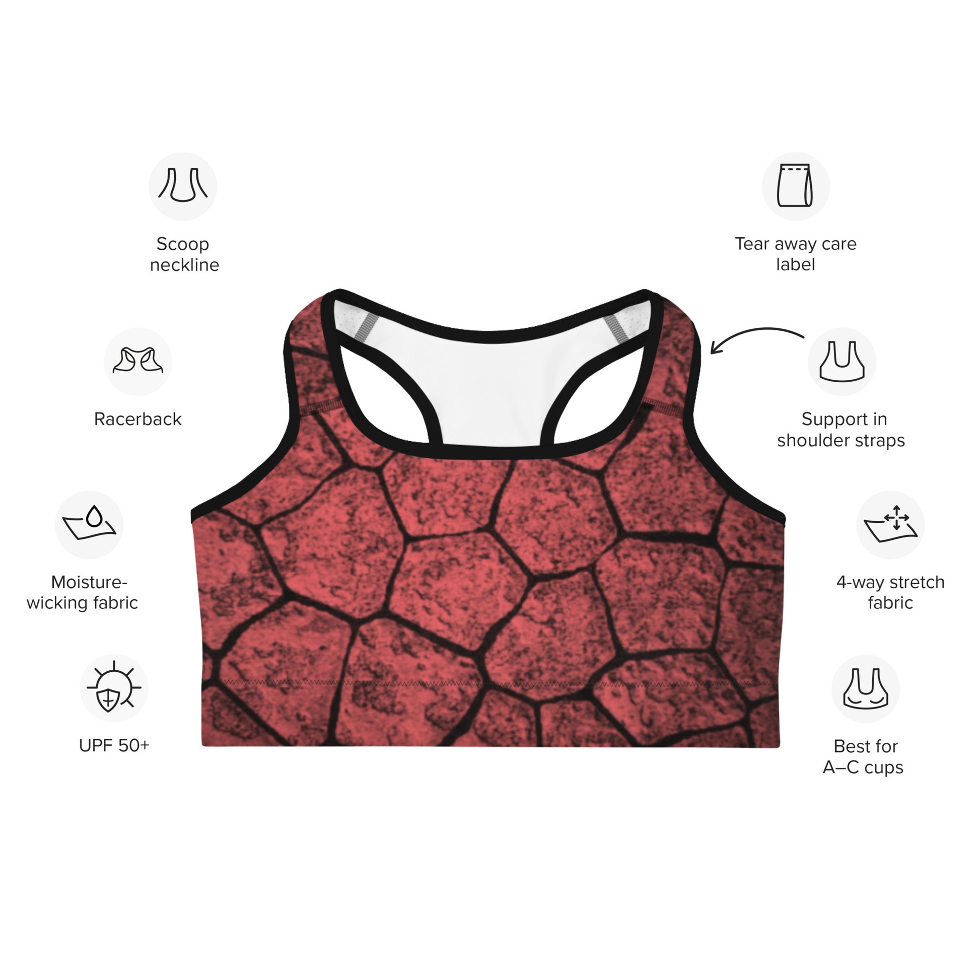 • Support material in the shoulder straps, double-layered front, and a wide elastic band under breasts for extra support