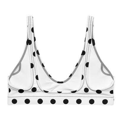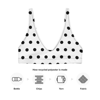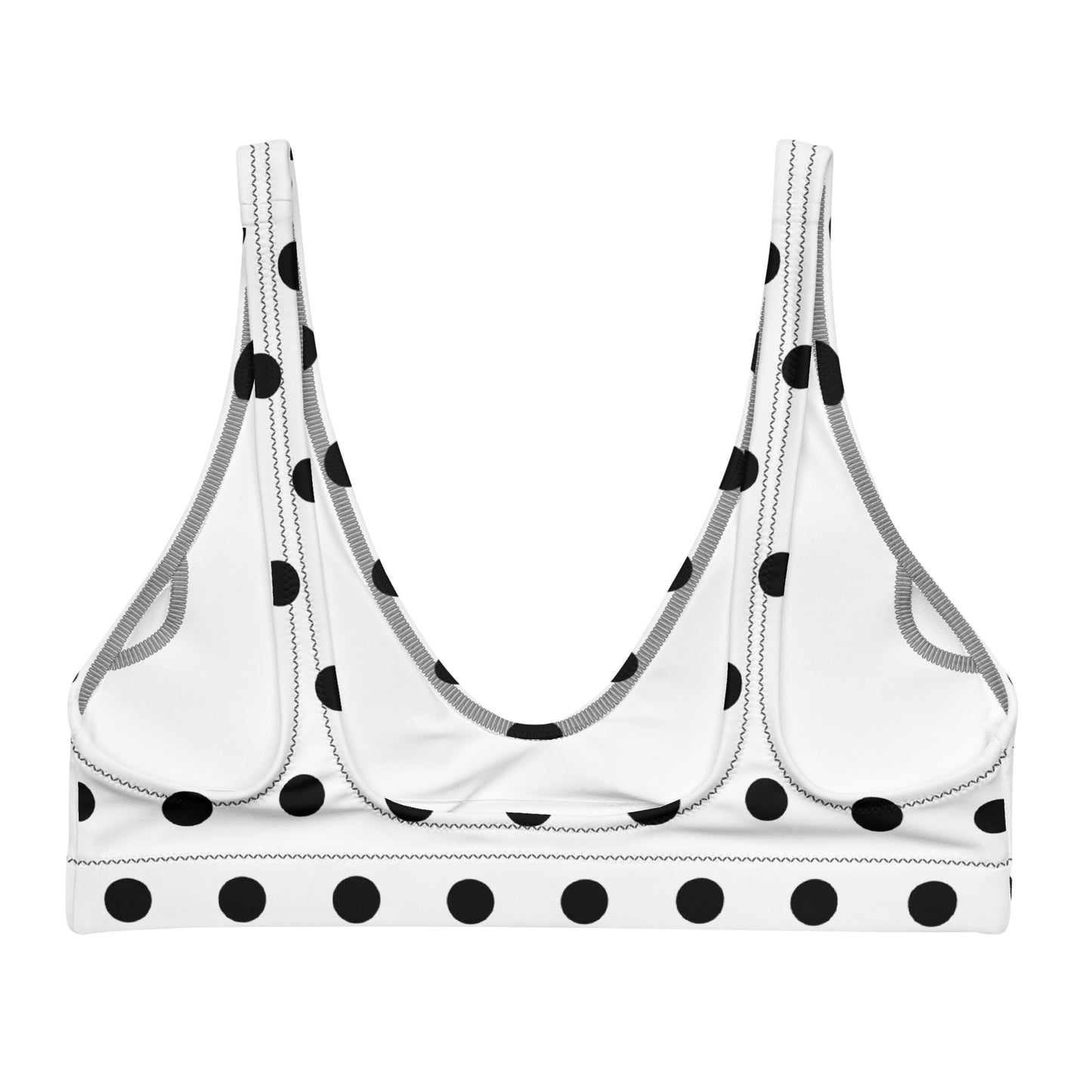 Black polka dot bikini top for women, a timeless and stylish addition to your swimwear collection. Crafted with meticulous attention to detail, this top offers a perfect blend of comfort and fashion-forward design. The classic black hue serves as a versatile backdrop, while the playful polka dot pattern adds a touch of whimsy and charm. Designed to provide excellent support and a flattering fit, our bikini top ensures you feel confident and ready for any beach or poolside adventure. Embrace effortless elegance and make a splash this summer with our black polka dot bikini top.